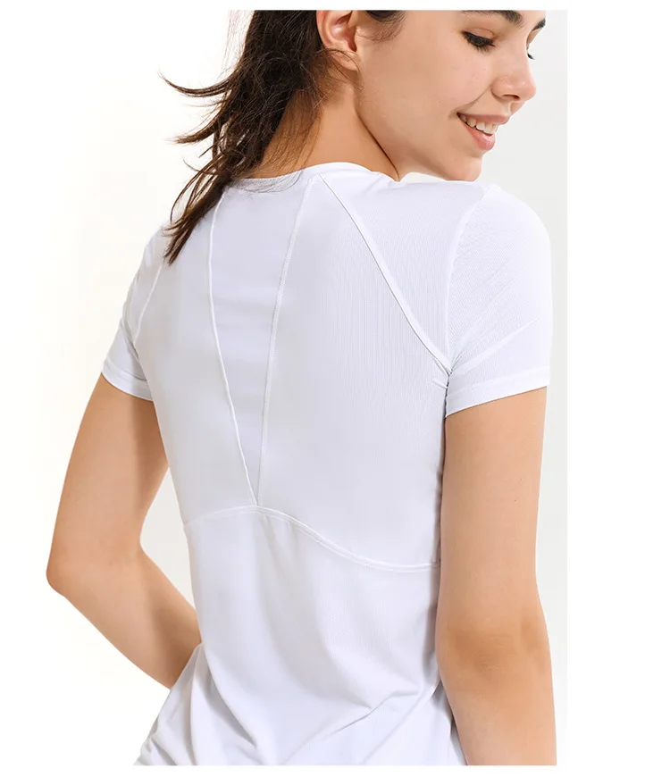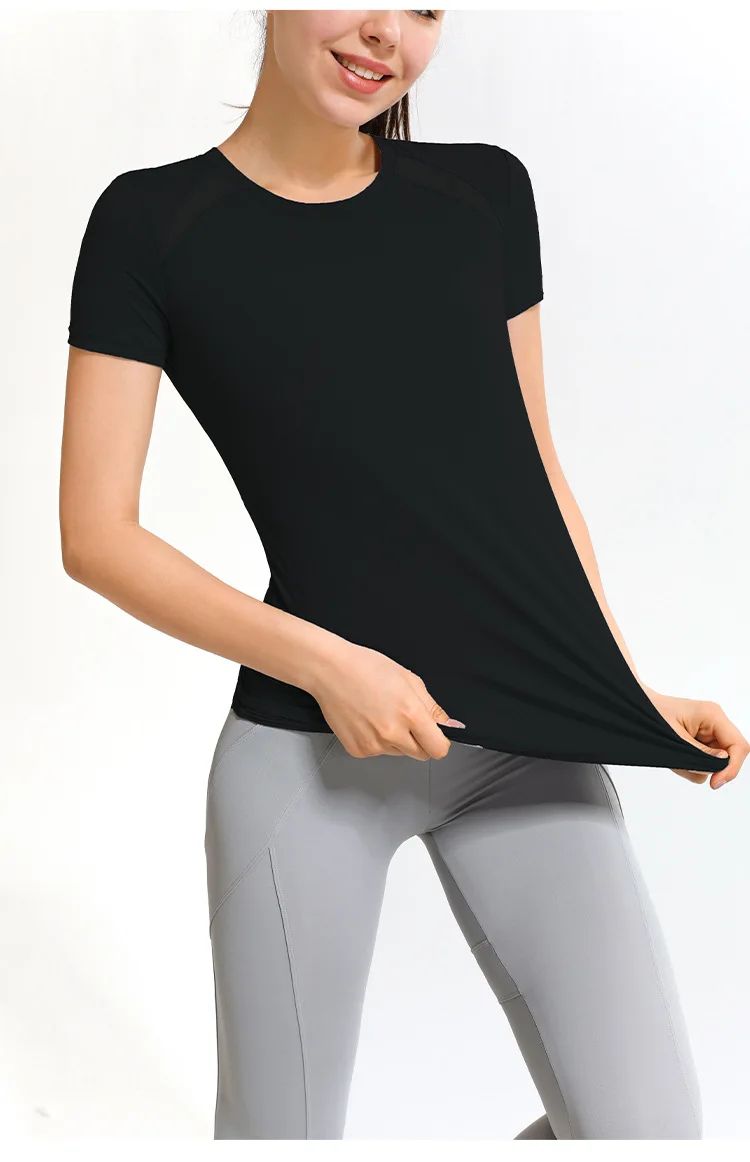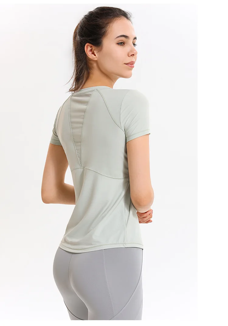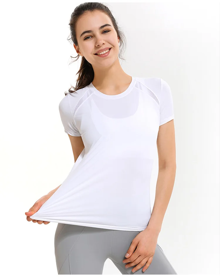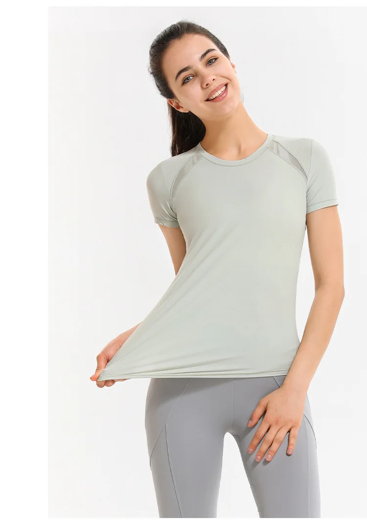 2021 summer new style side mesh solid color moisture wicking running sports fitness T-shirt yoga short sleeve tops