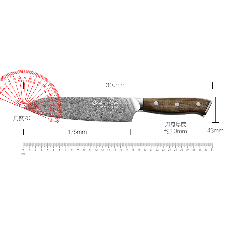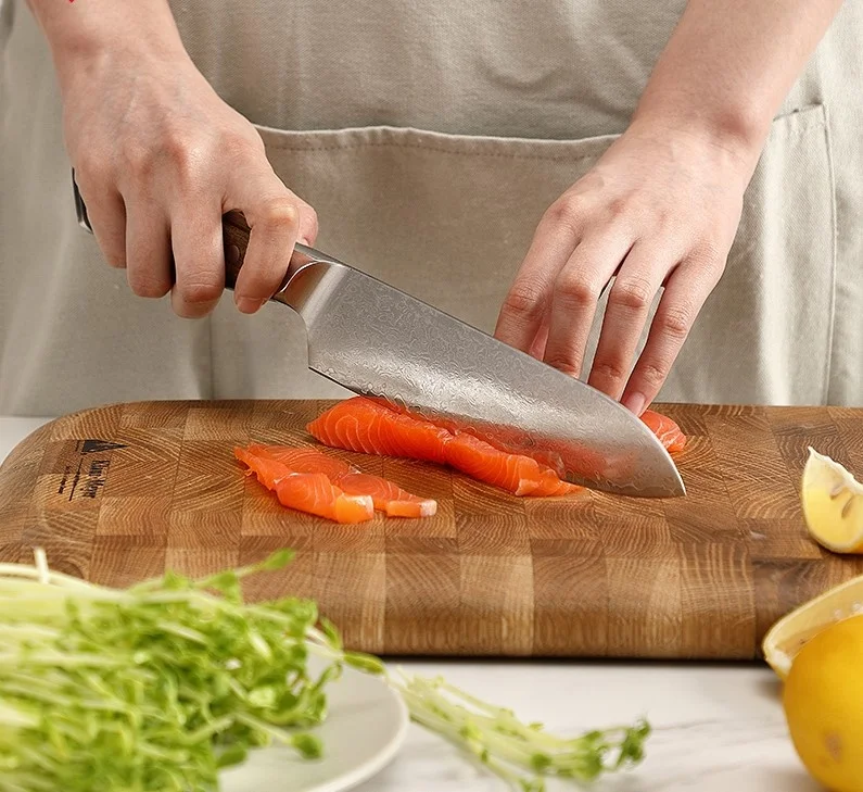 8 inch Damascus Kitchen Santoku Knife, VG-10 Damascus Steel, with Comfortable Ergonomic Wood Grain Handle