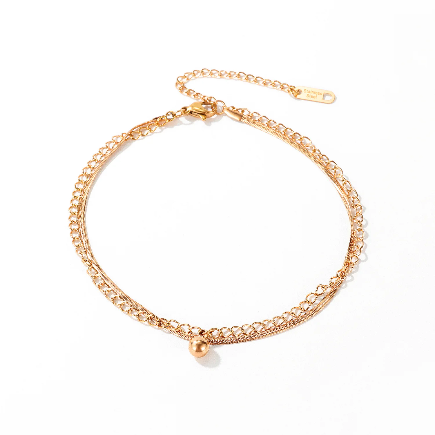 Dainty stainless steel cuban link bohemian style feet jewelry ankle bracelet for women