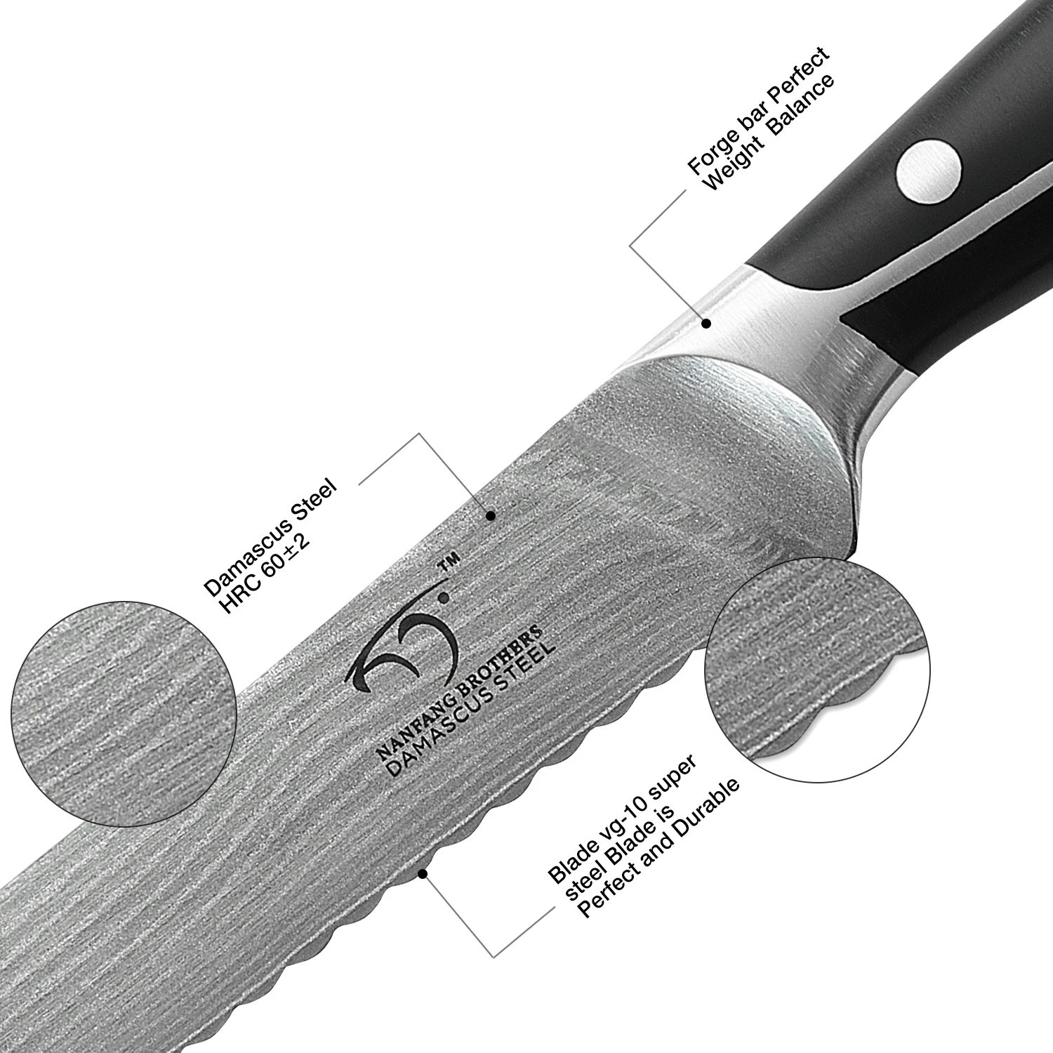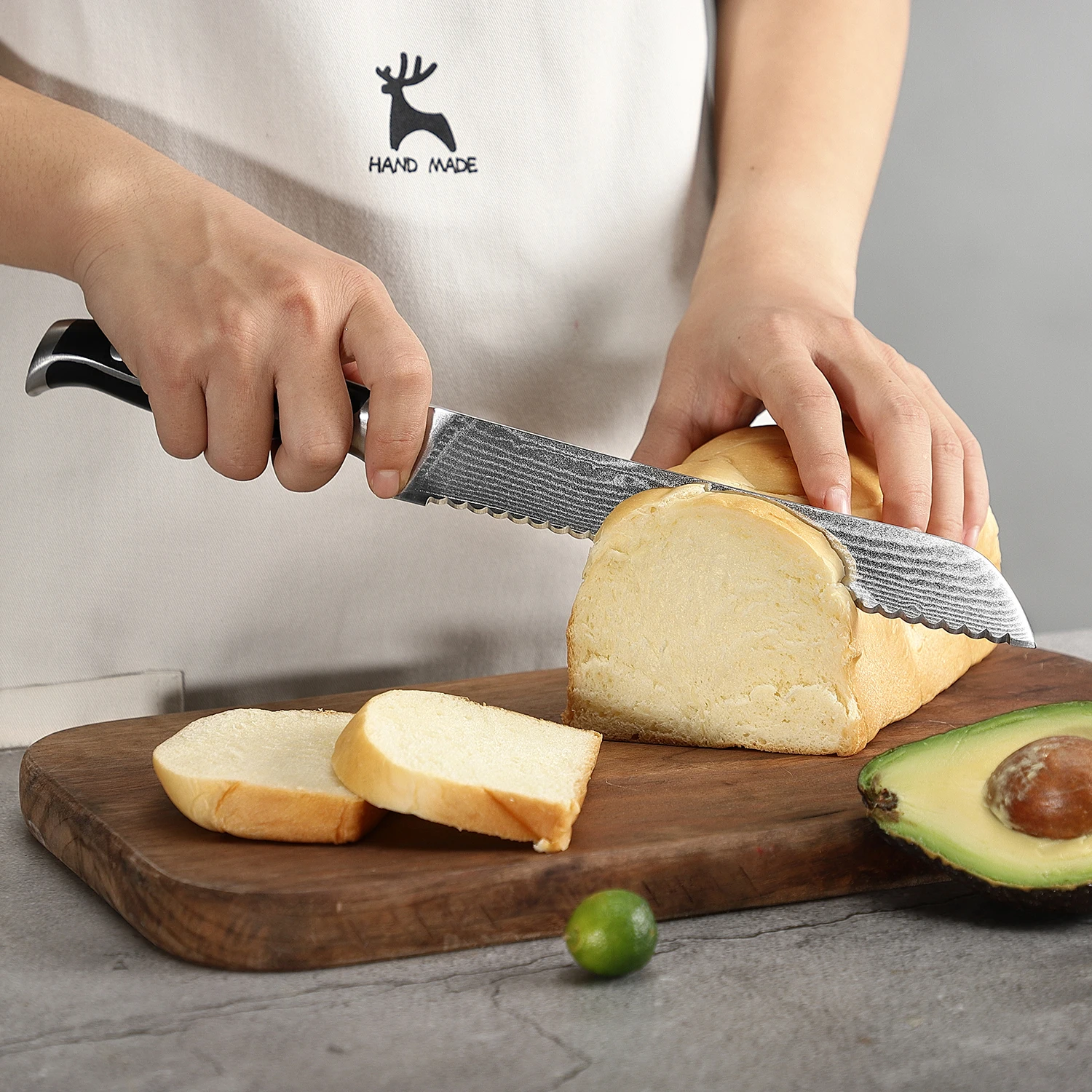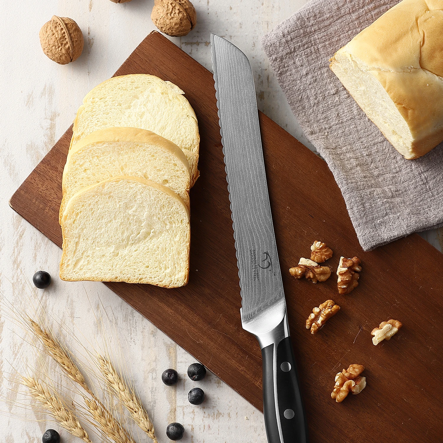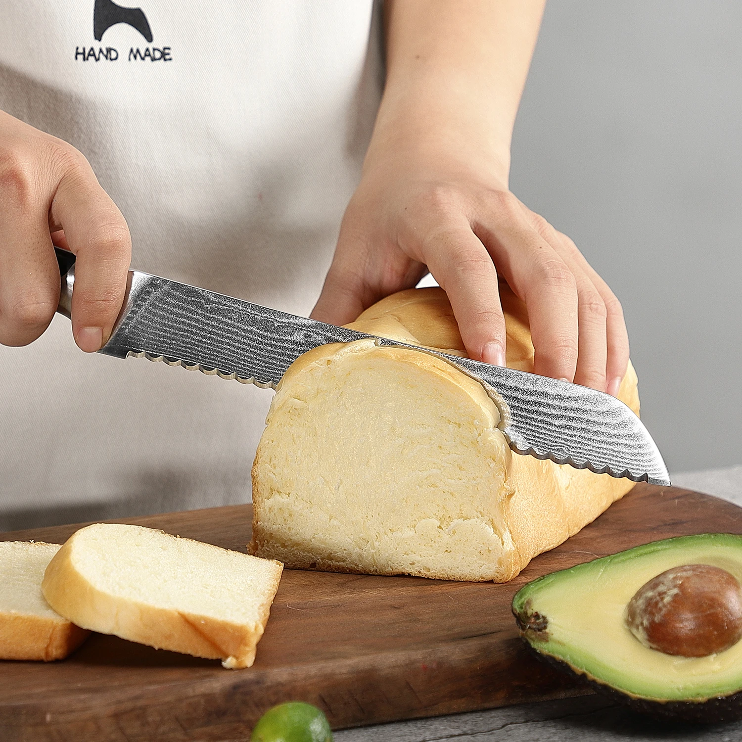 Damascus Bread Knife 8 inch professional VG-10 Damascus Steel Knife Comfortable Ergonomic ABS Handle