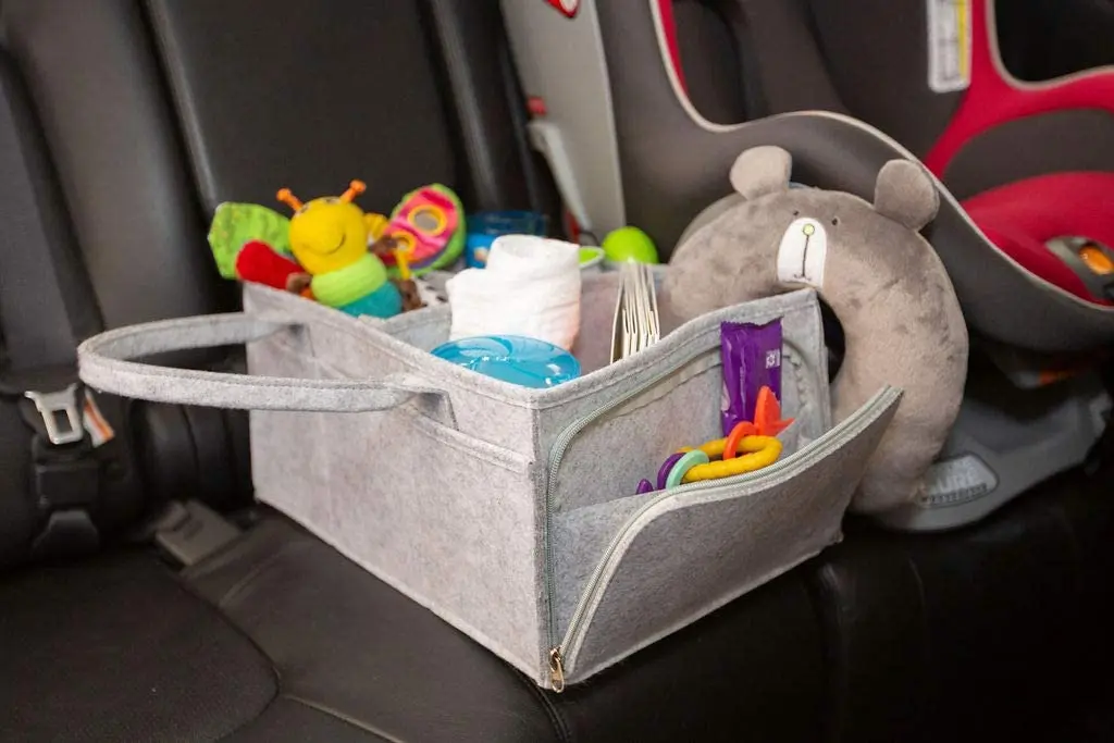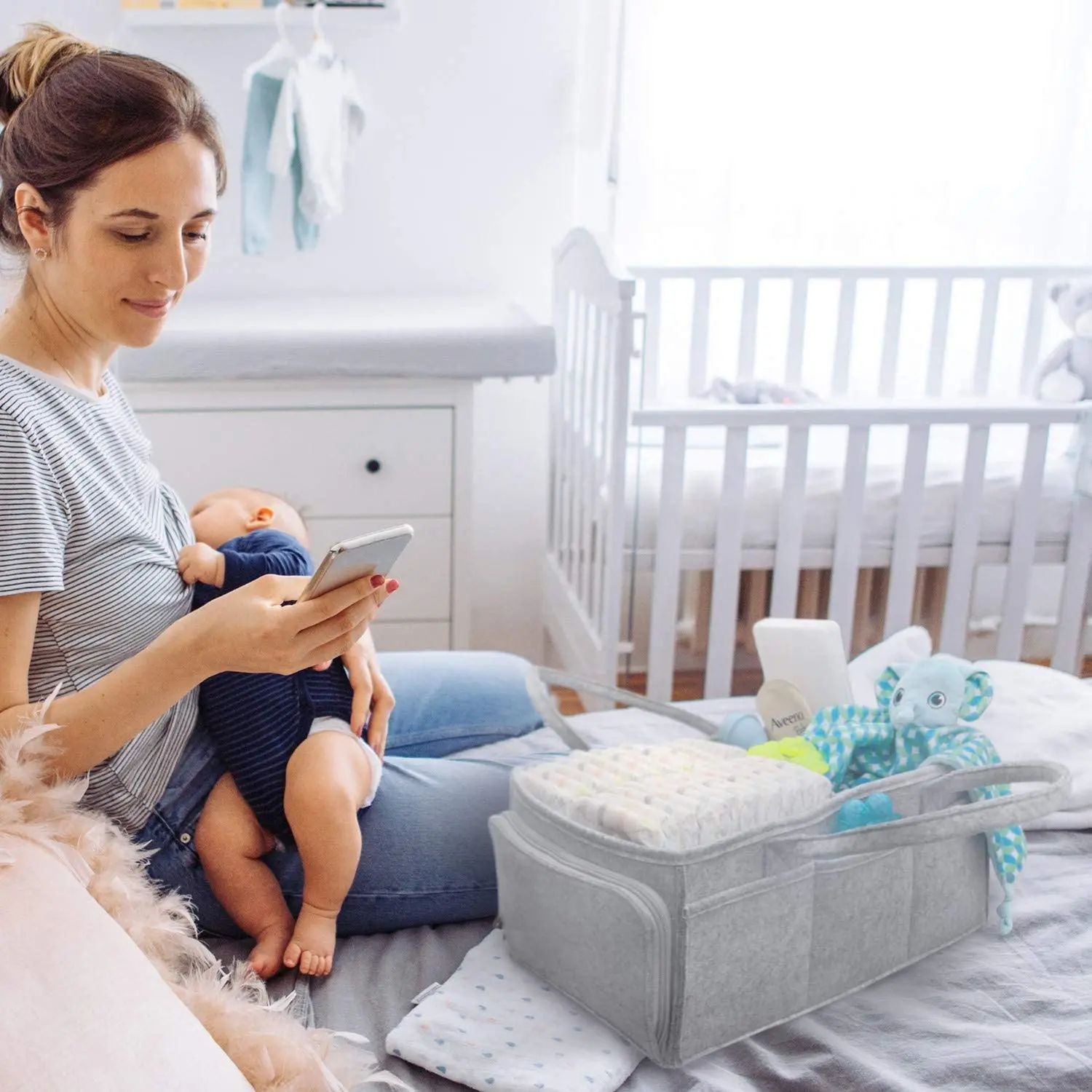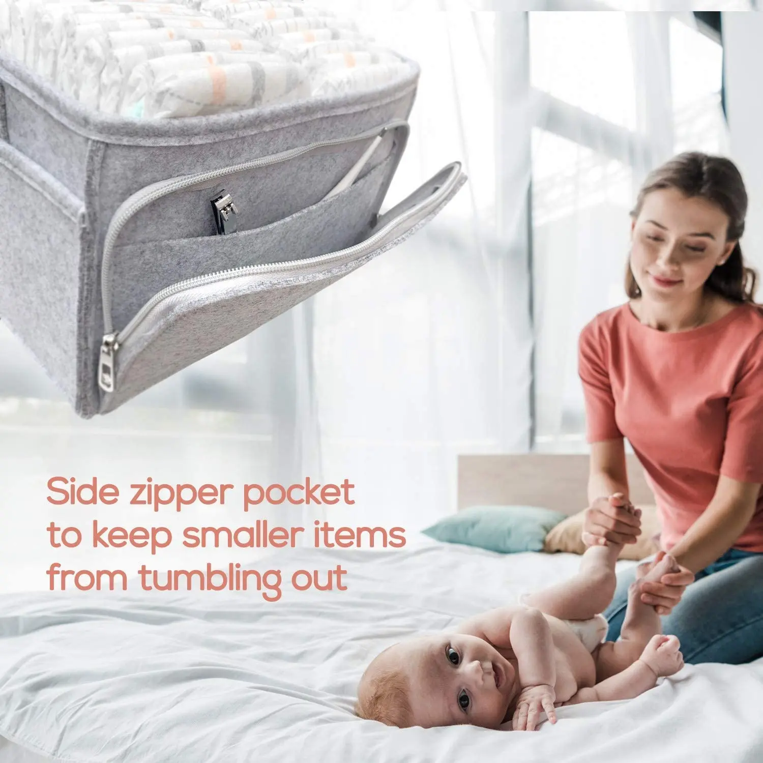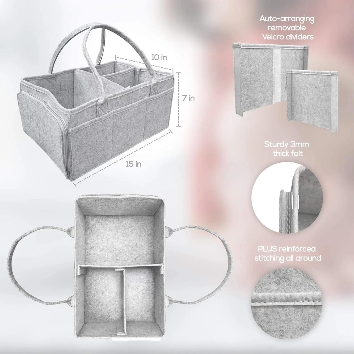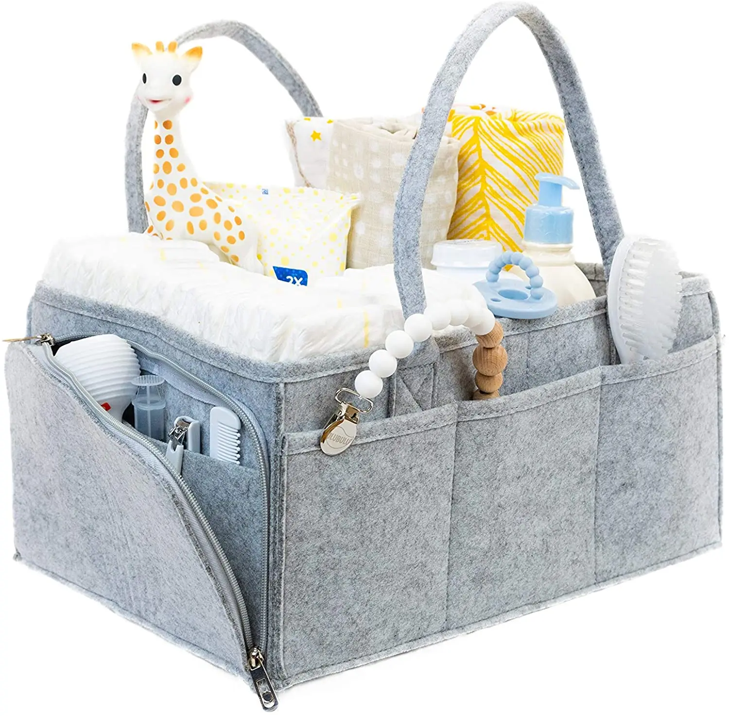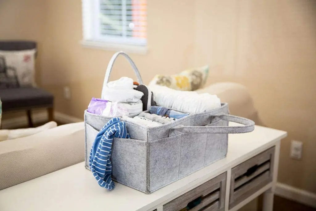 Easy-grip handle Baby Diaper Caddy Organizer Large Grey Portable Diaper Holder for Nursery or Car with Zipper Pocket