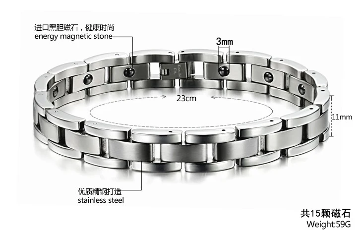 Free Nickle Anti-allergy Stainless Steel Men Magnetic New Energy Bracelet GS8012
