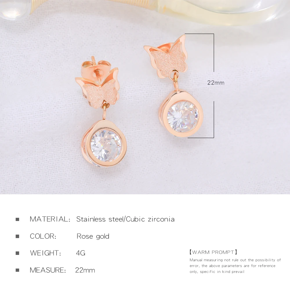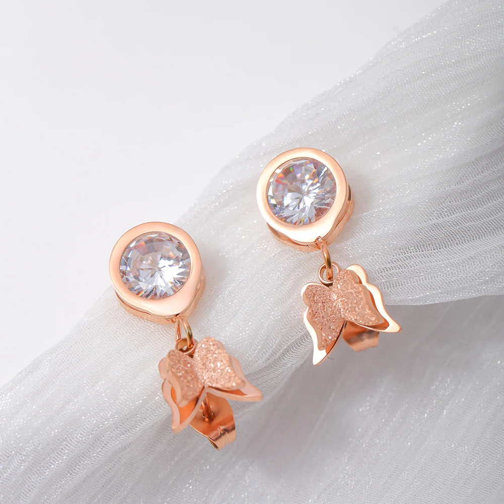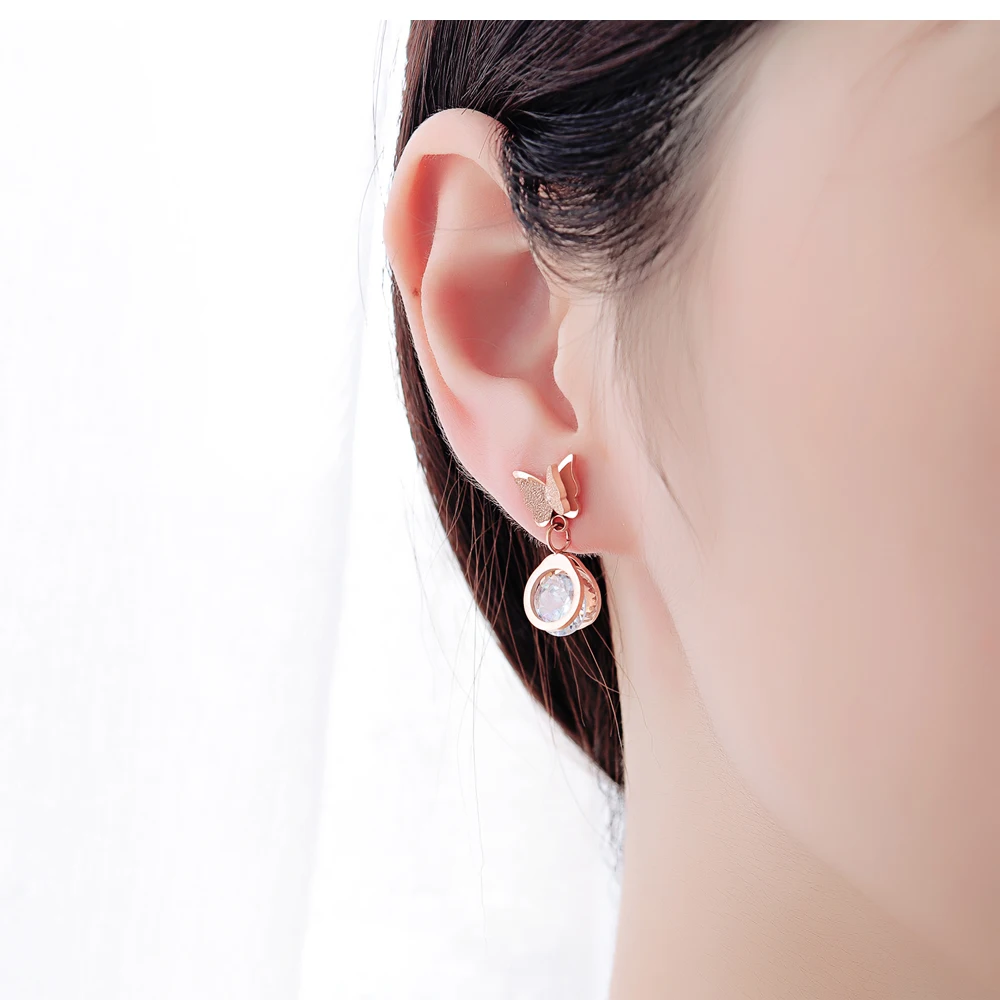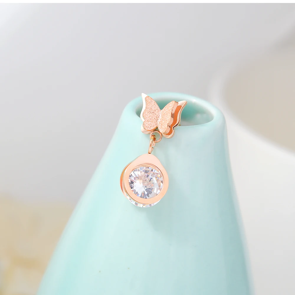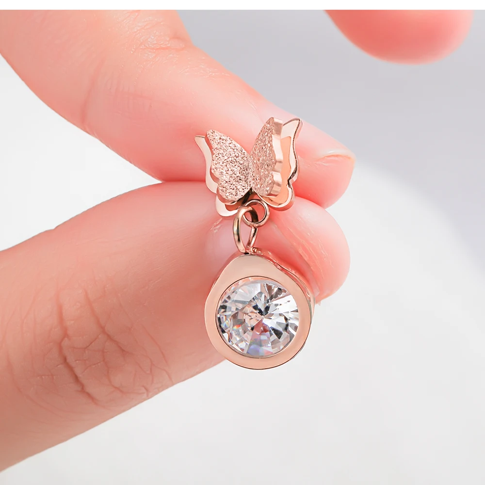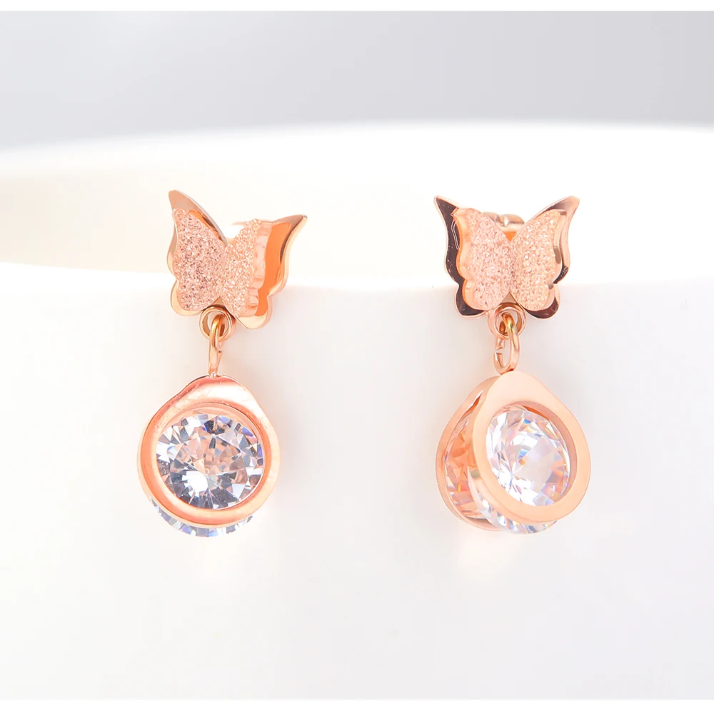 Luxury and trendy stainless steel butterfly diamond pendant gold earrings for women