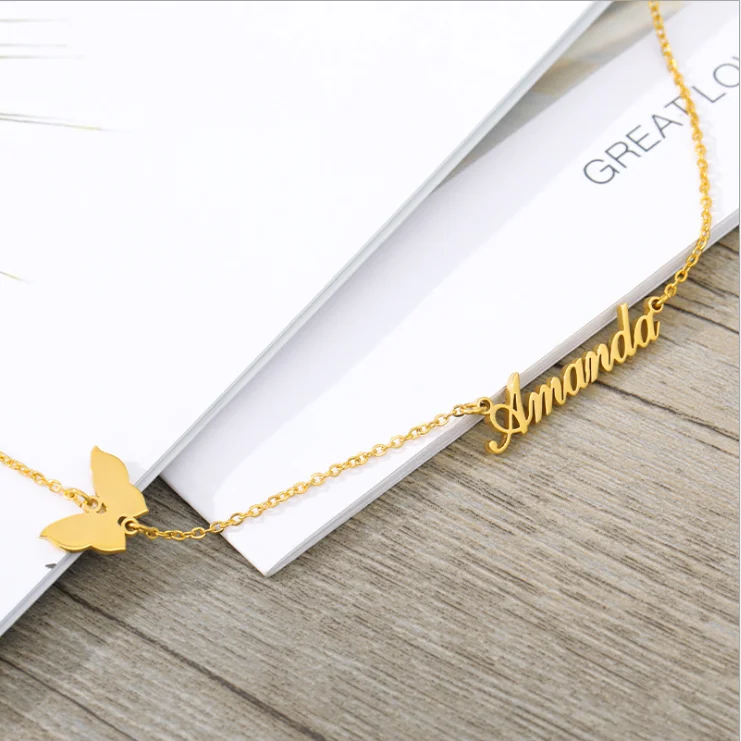 New Style Personalized Customization Stainless Steel Gold Plated Name Necklace For Women