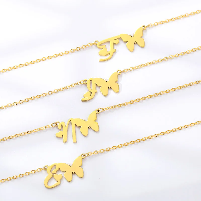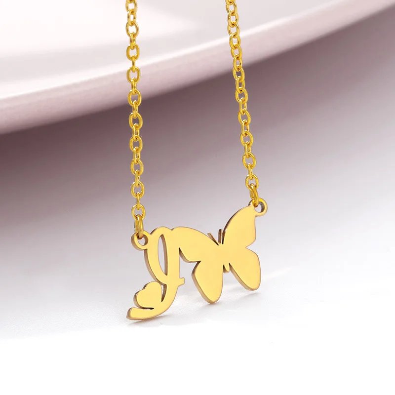 Product Name | Customization Gold Plated Initial Butterfly Letter Necklace |