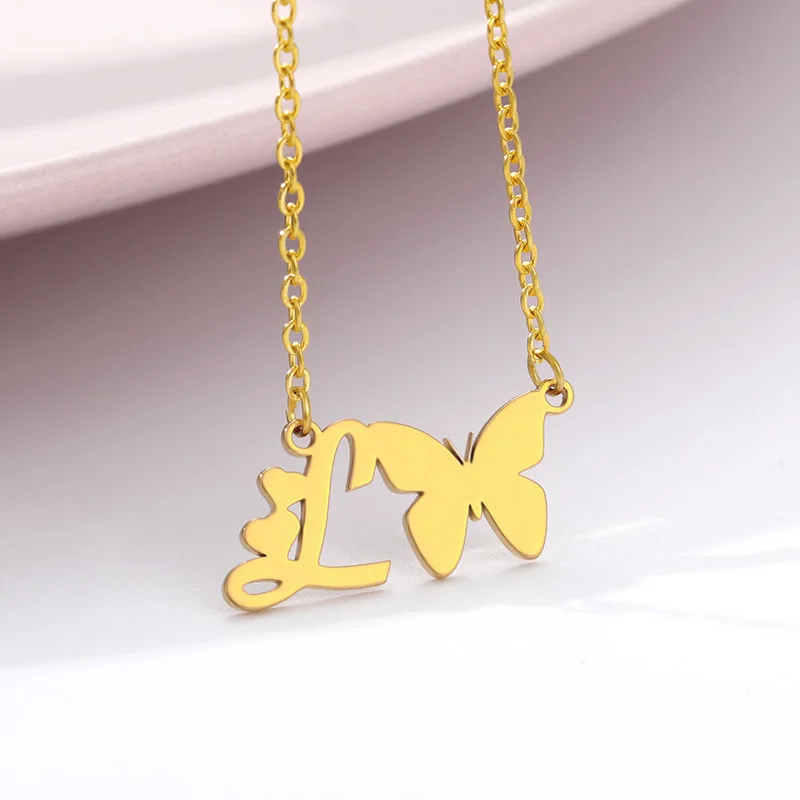 Personalized Customization Stainless Steel Gold Plated Initial A-Z Butterfly Letter Necklace Jewelry For Women