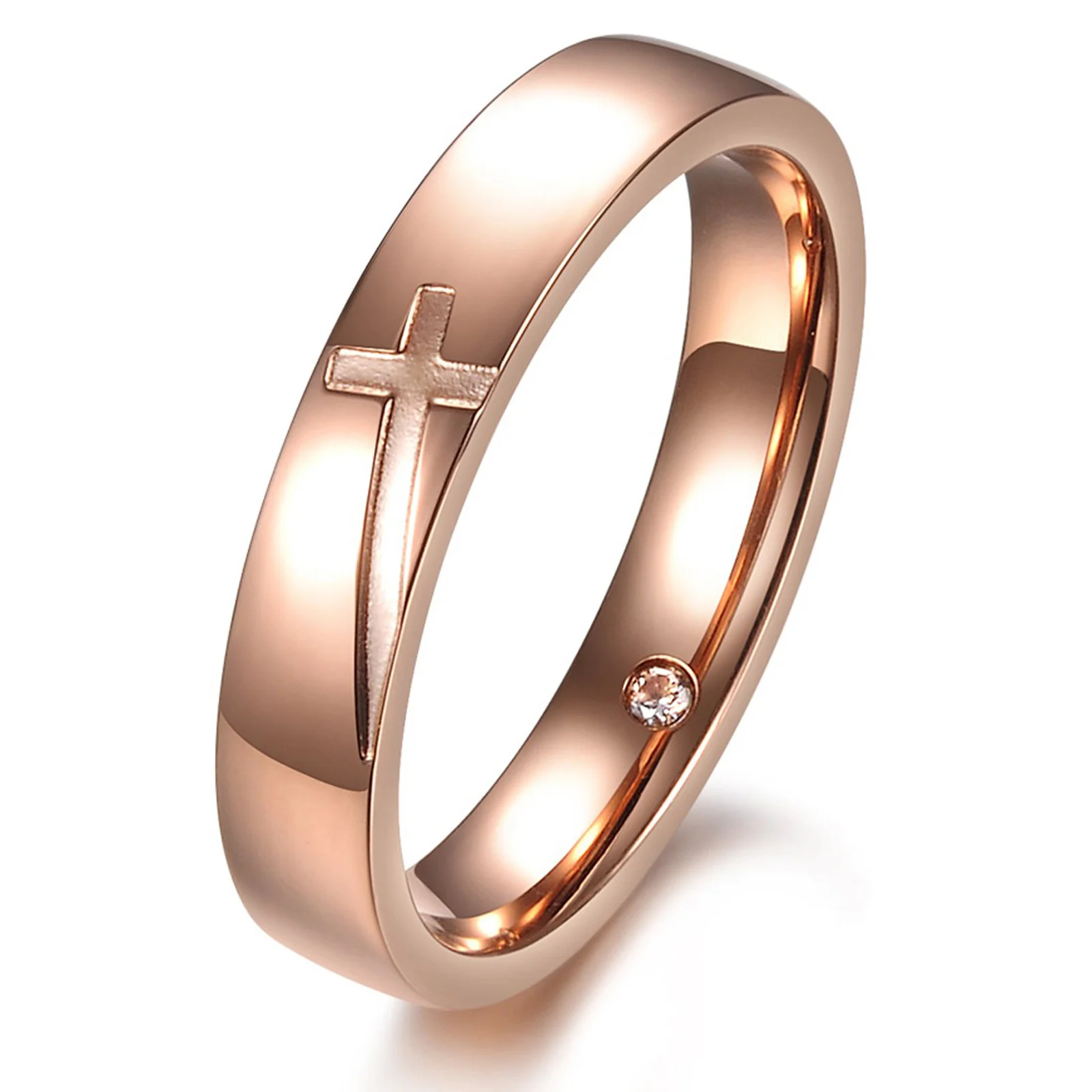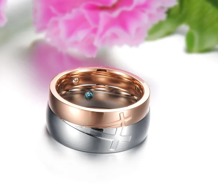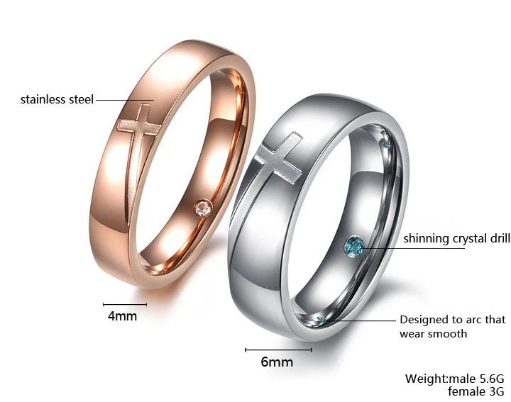 Romantic cross gold plated crystal wedding ring for men and women
