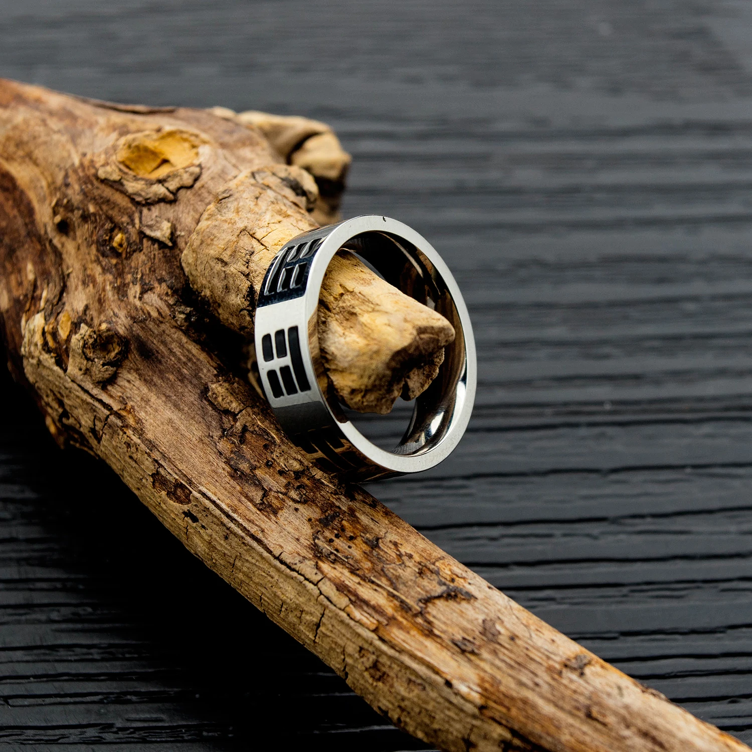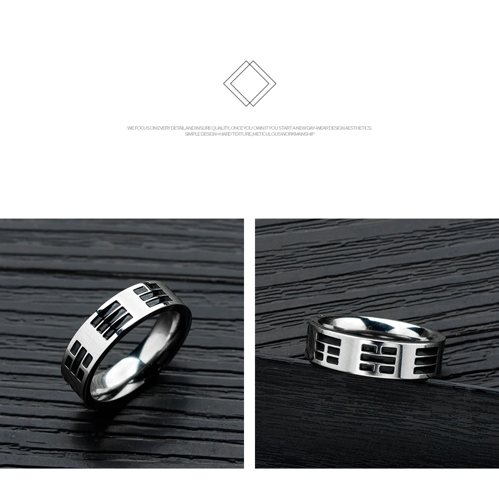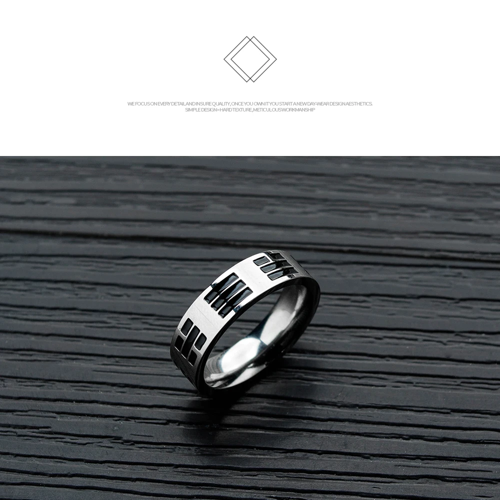 Romantic laser engraved black gold plated diamond wedding rings for men