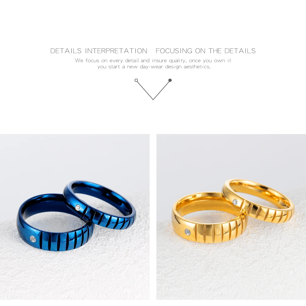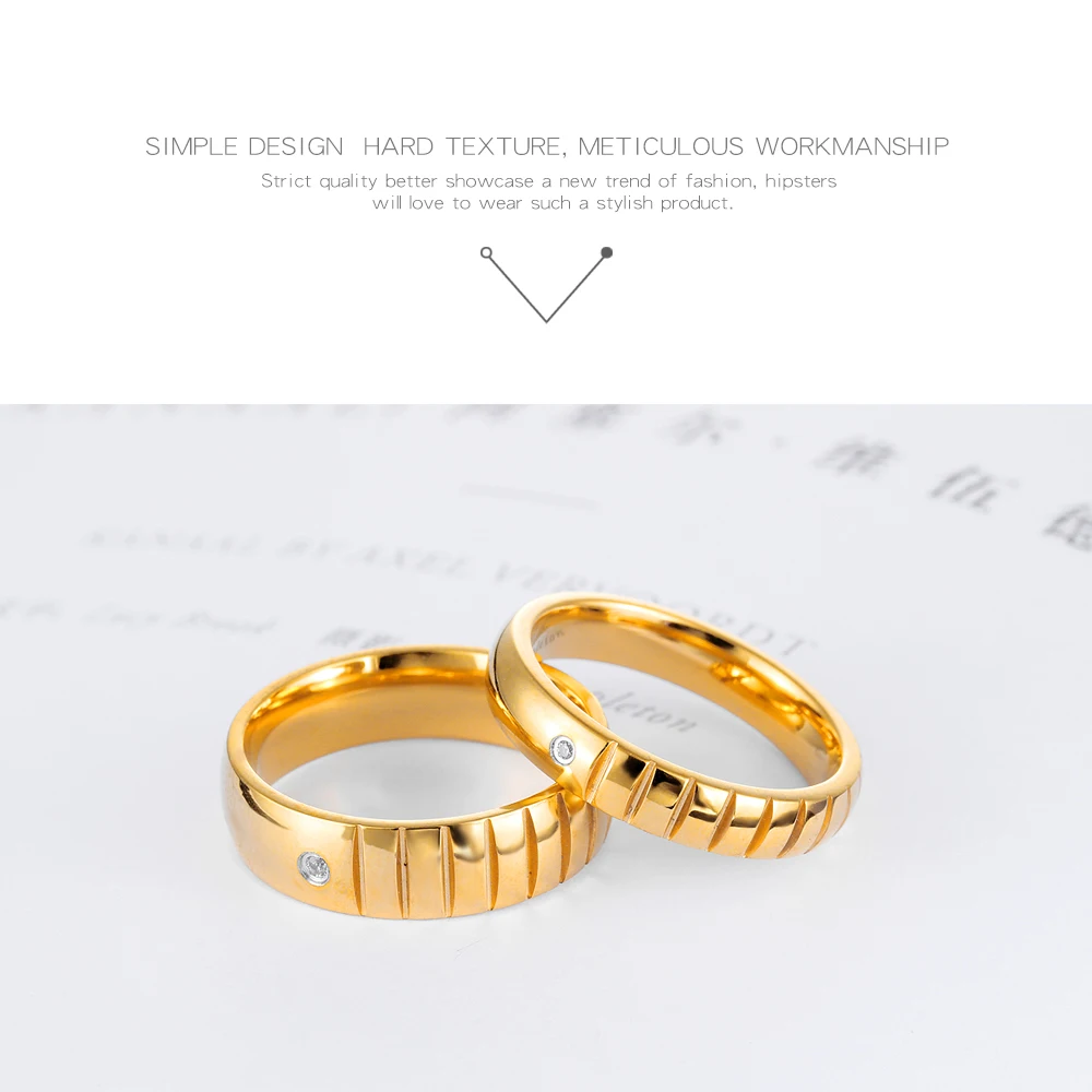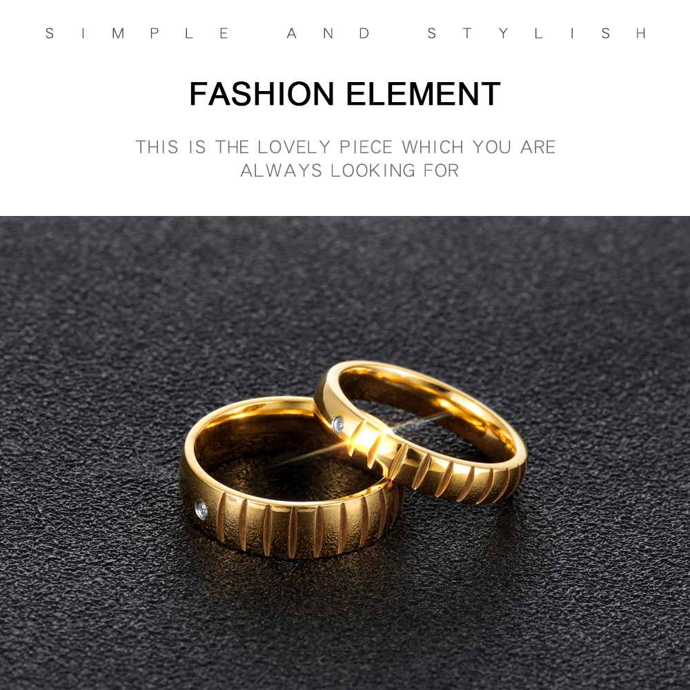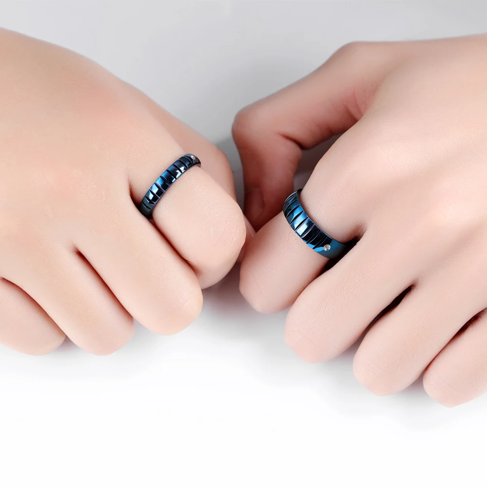 Romantic laser engraved black gold plated diamond wedding rings for men and women