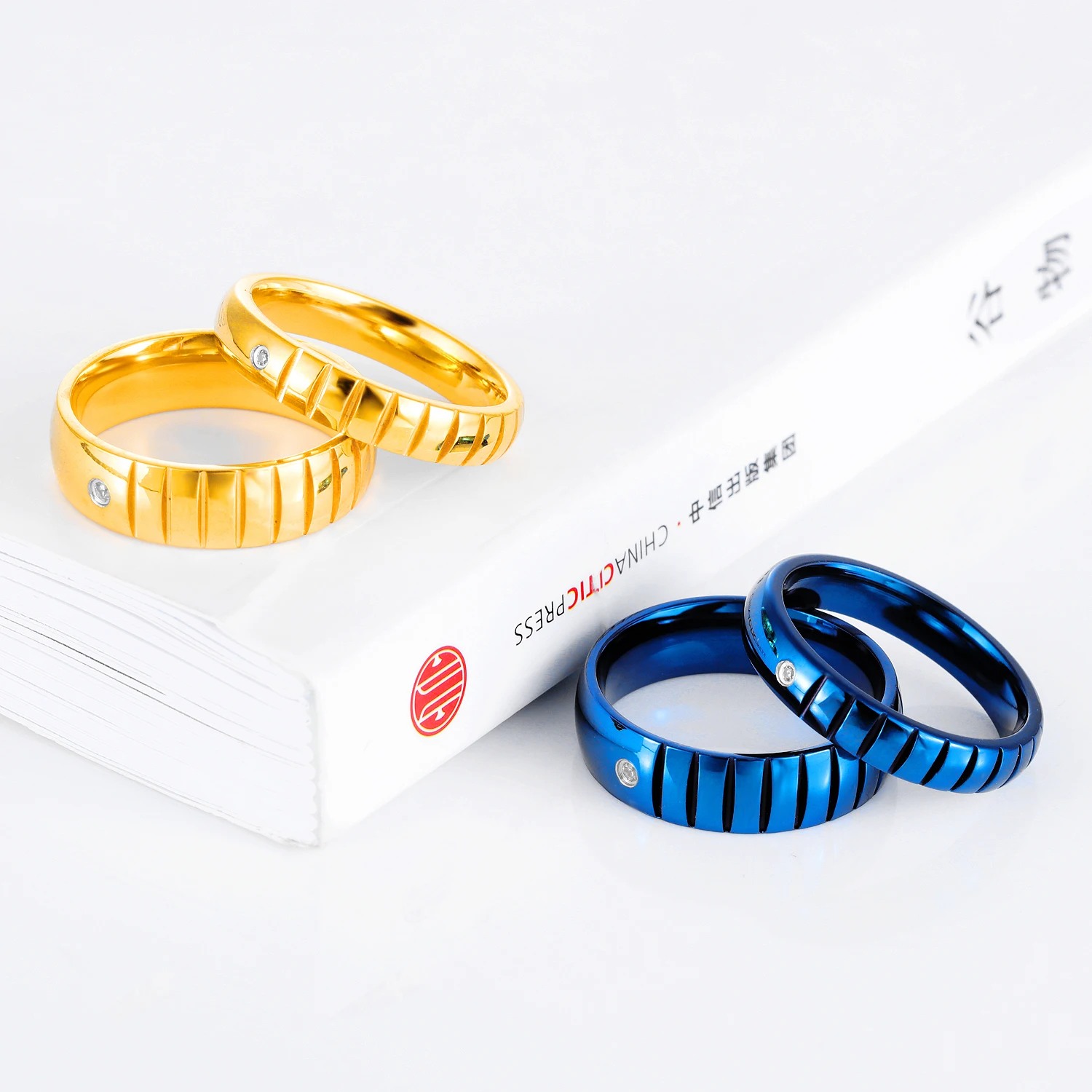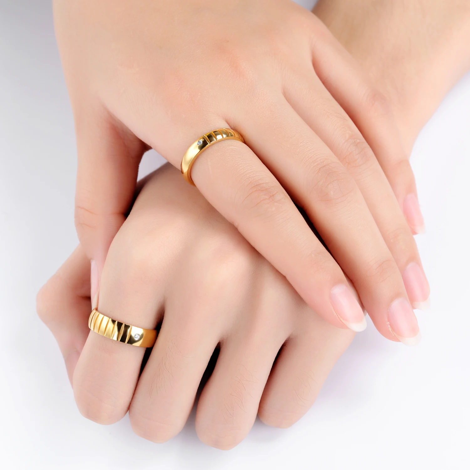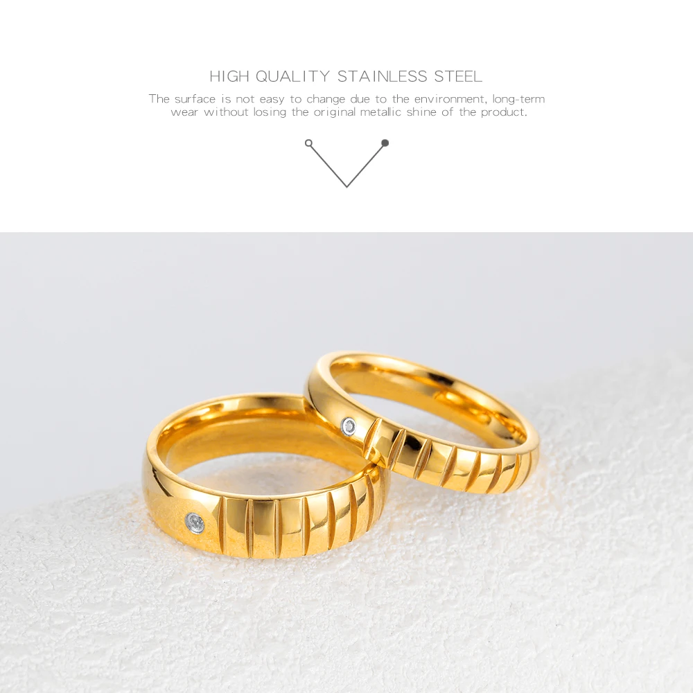 Romantic laser engraved black gold plated diamond wedding rings for men and women