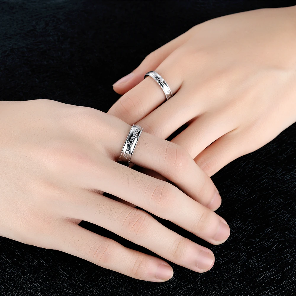 Romantic laser engraved black gold plated diamond wedding rings for men and women GJ607