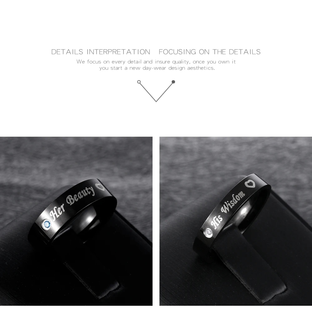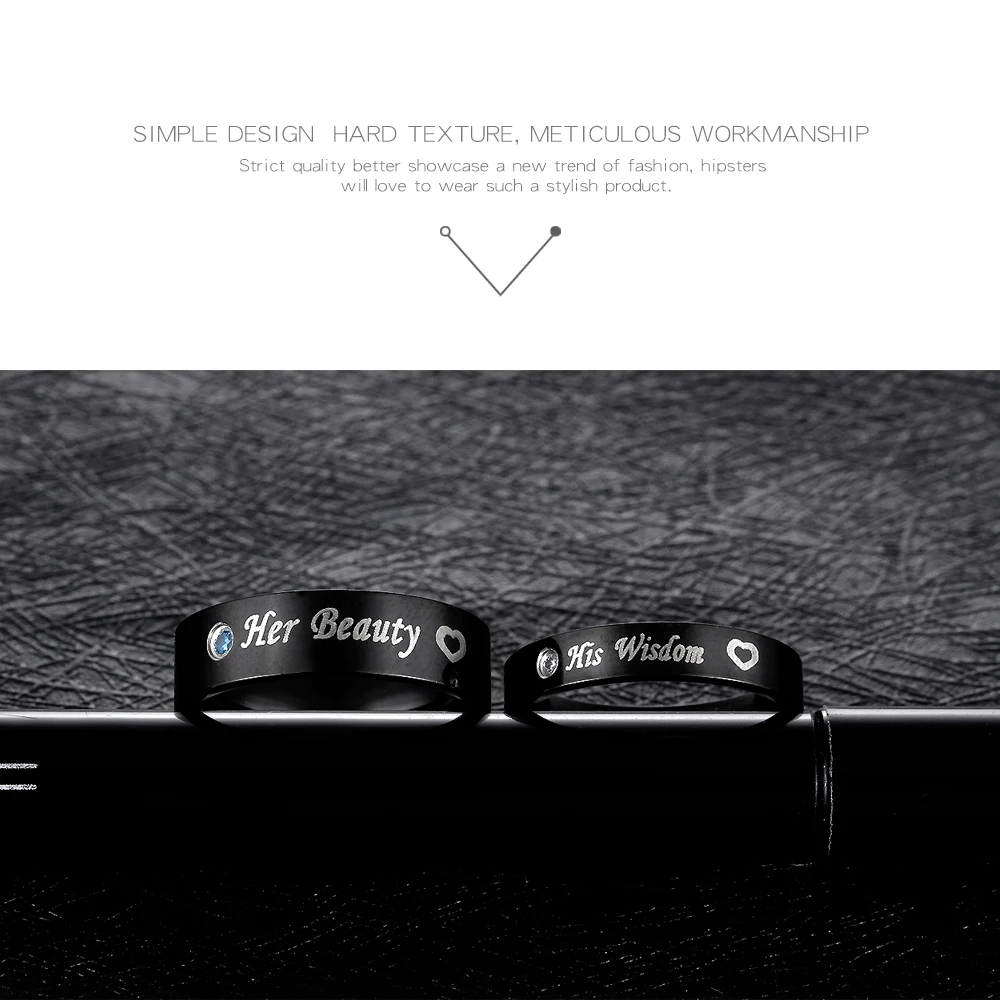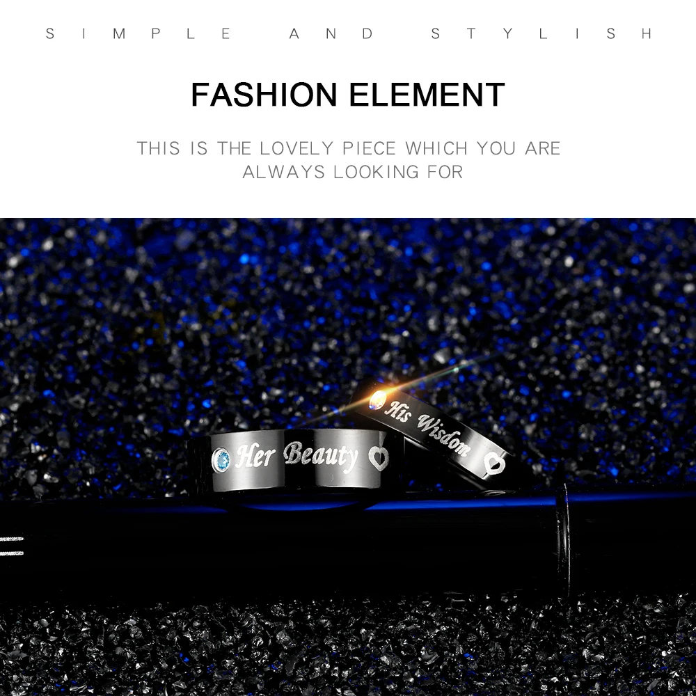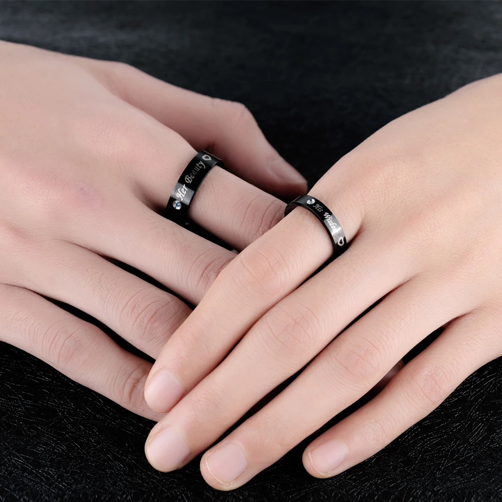 Romantic laser engraved black gold plated diamond wedding rings for men and women GJ609