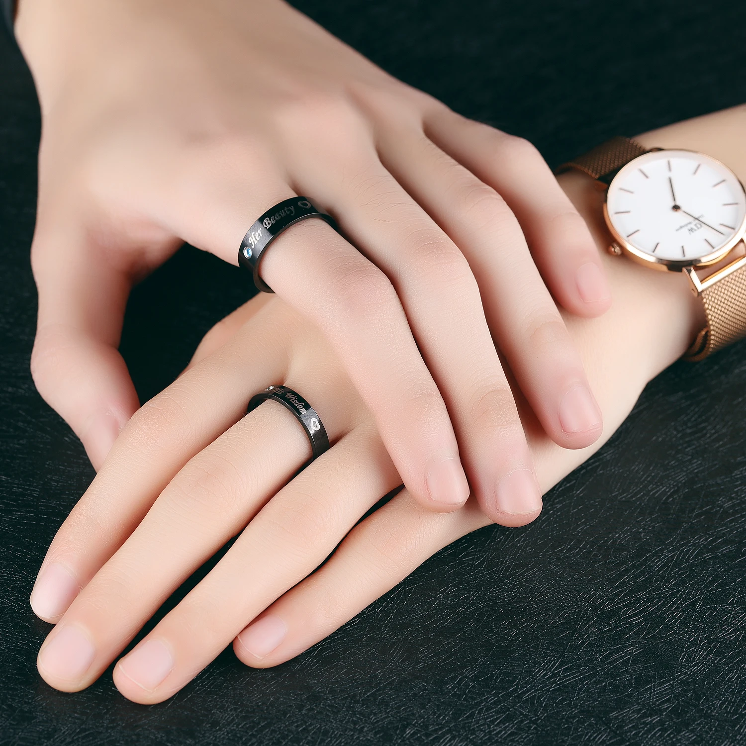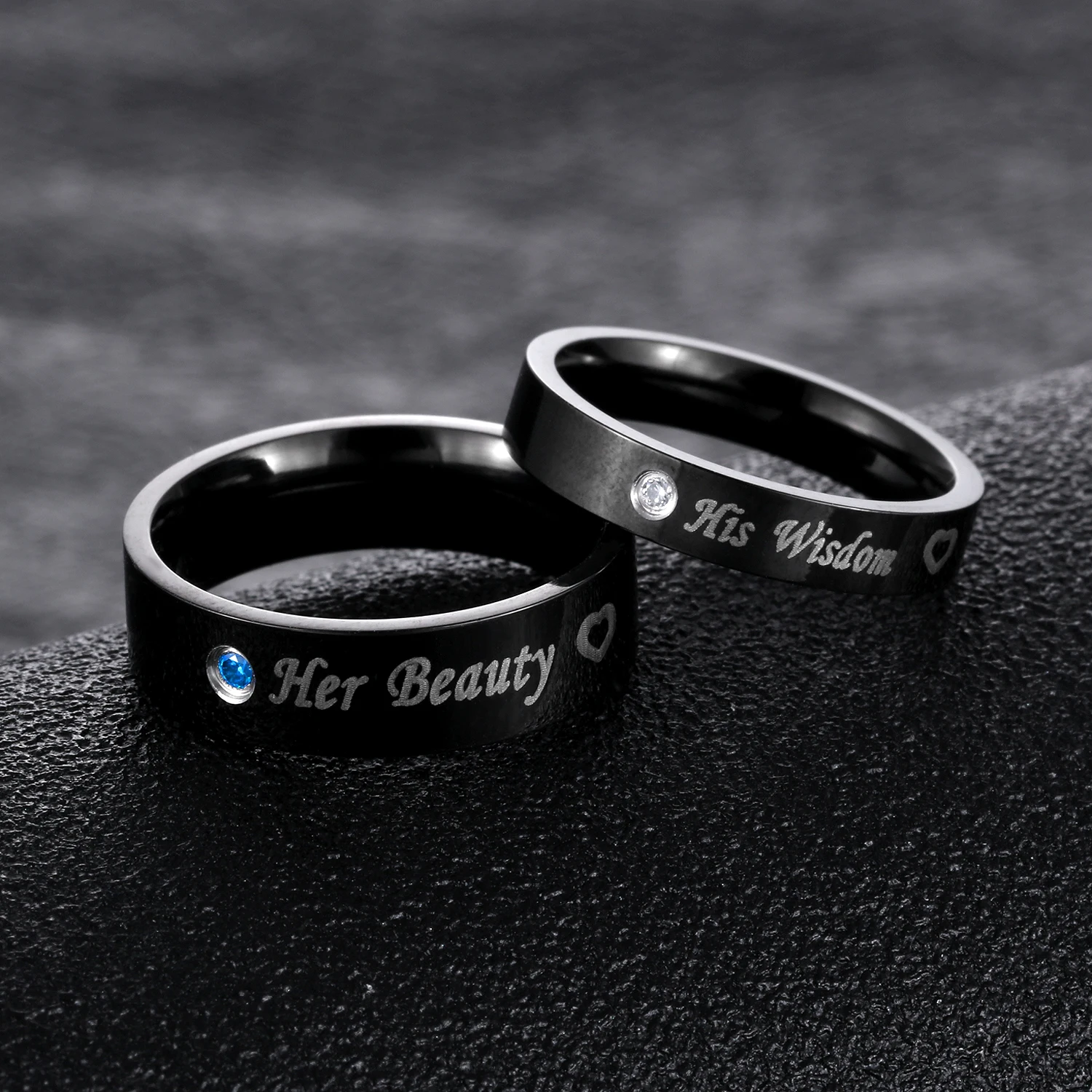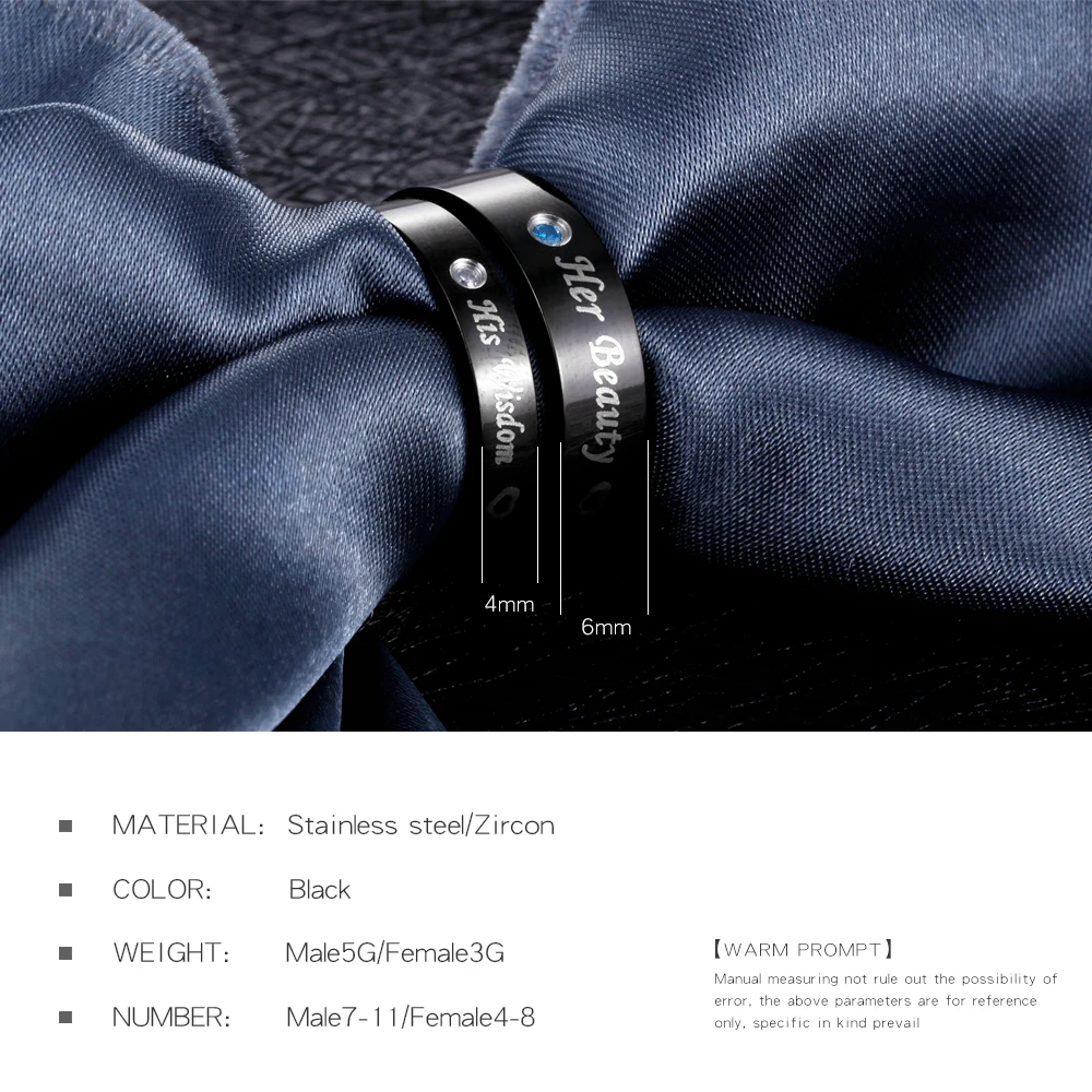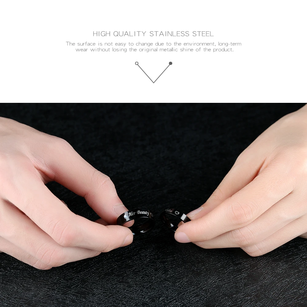 Romantic laser engraved black gold plated diamond wedding rings for men and women GJ609