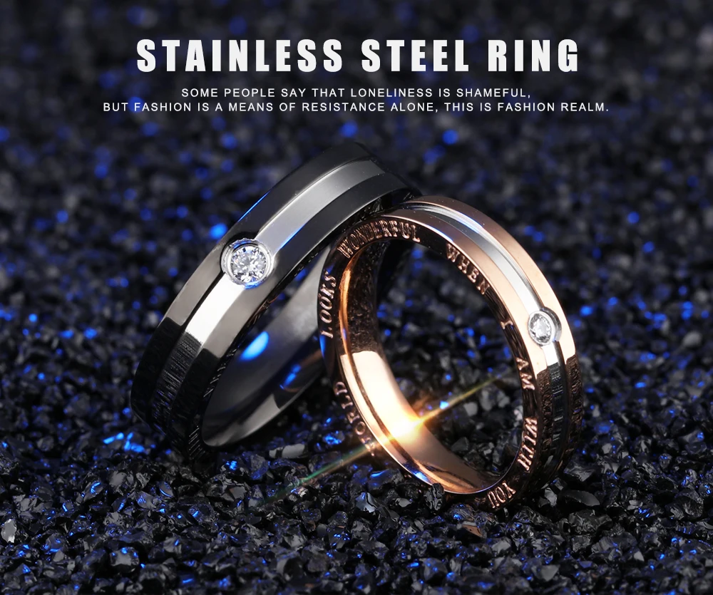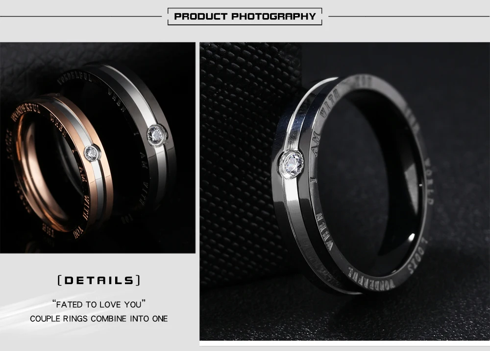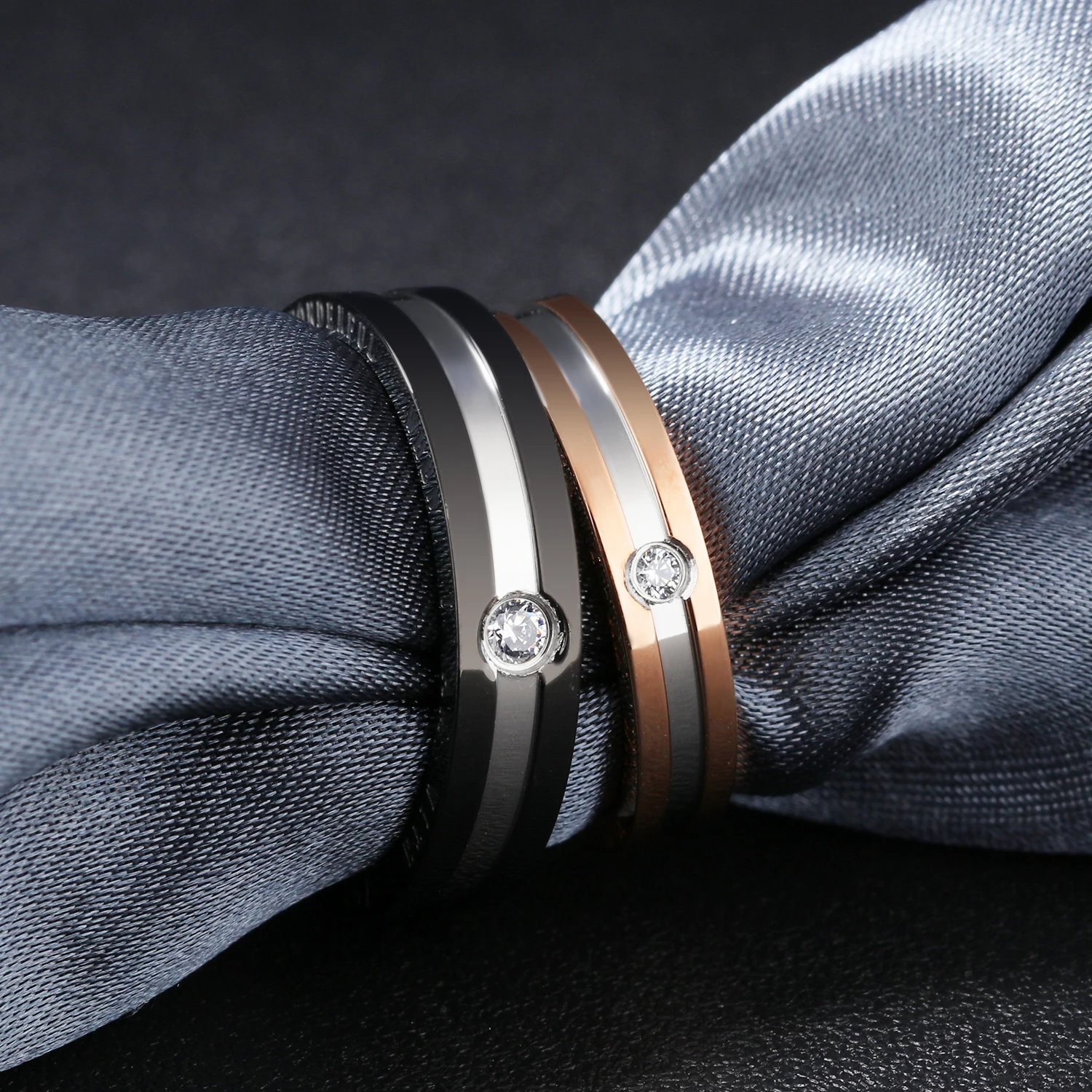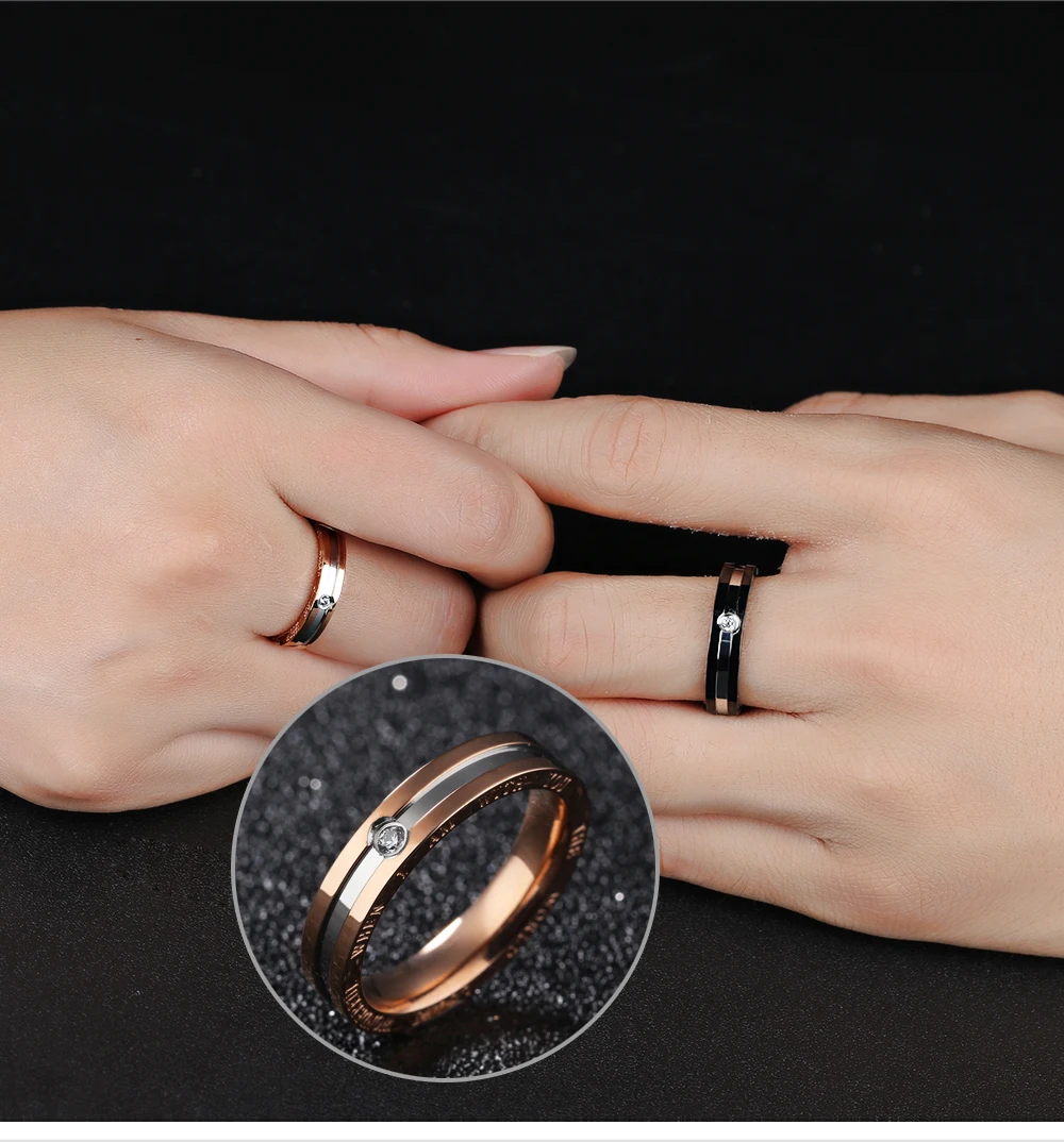 Romantic laser engraved black gold plated diamond wedding rings for men and women GJ306