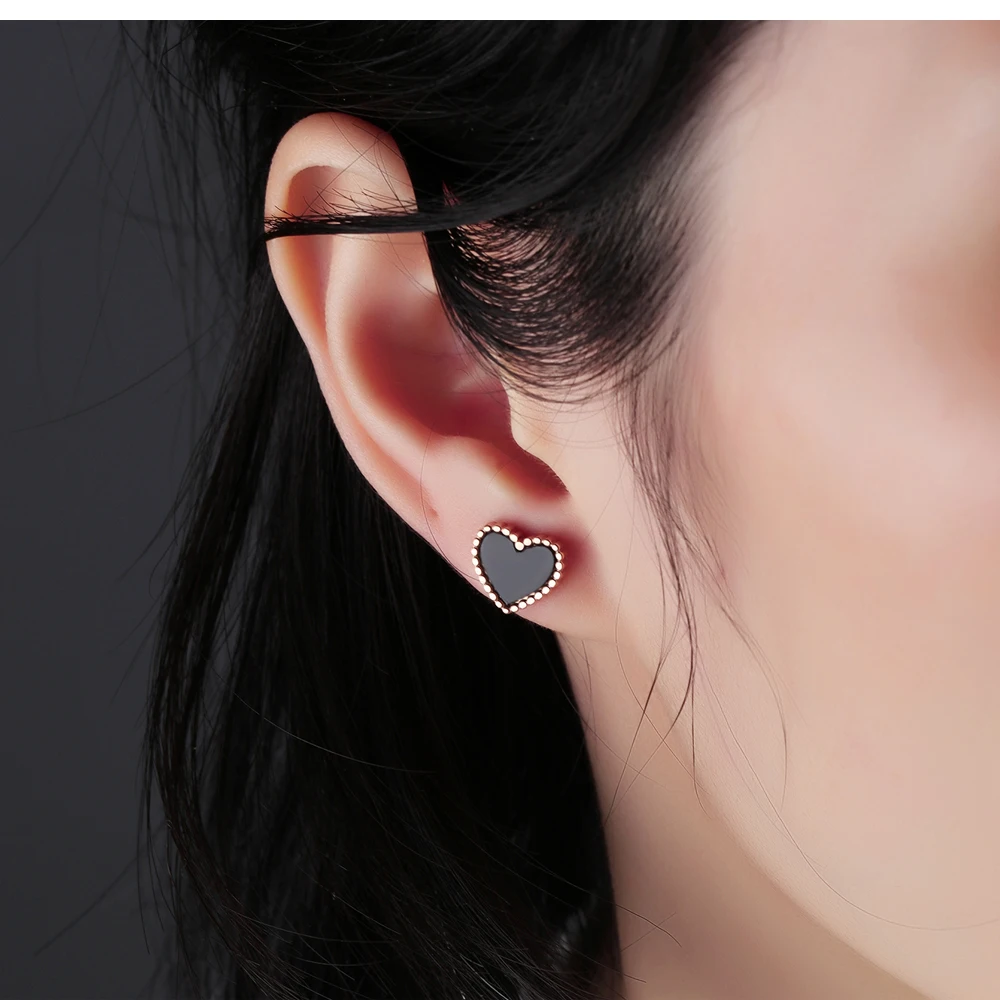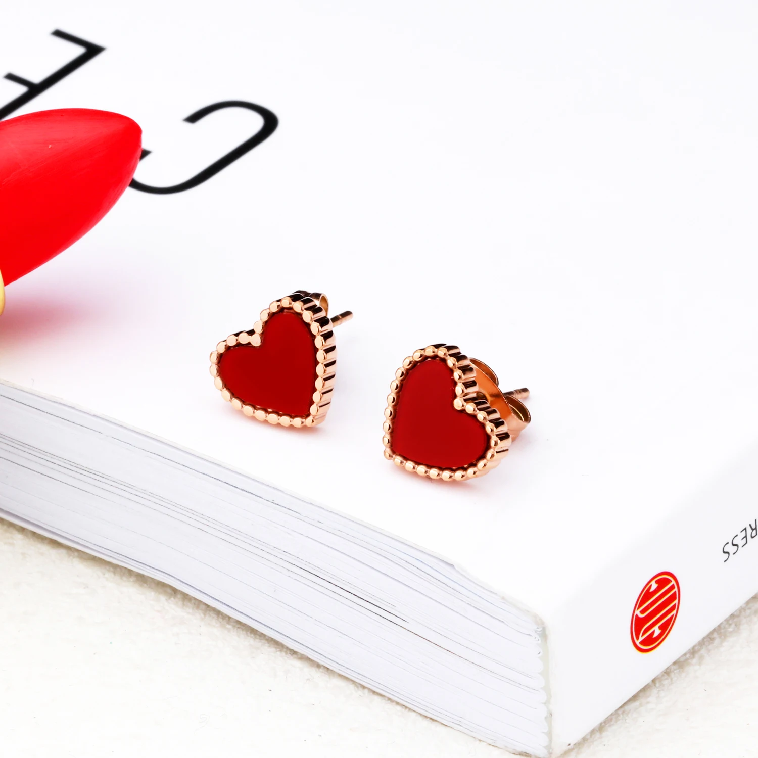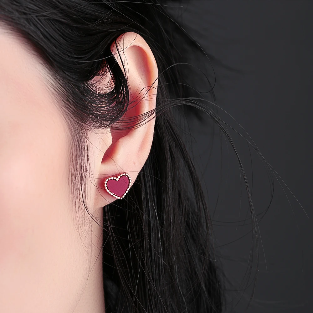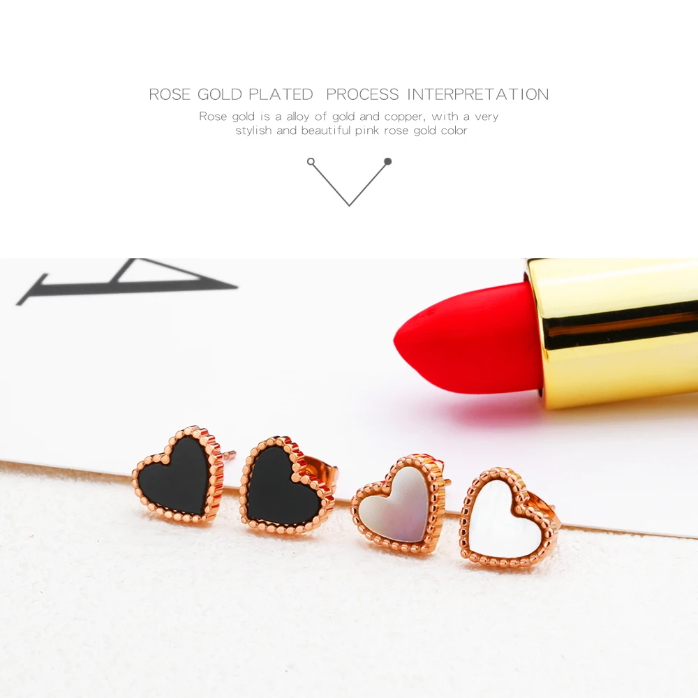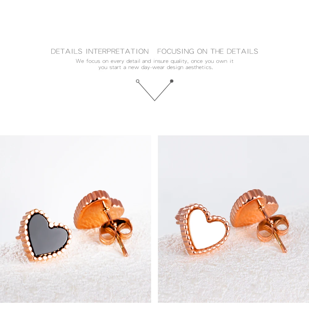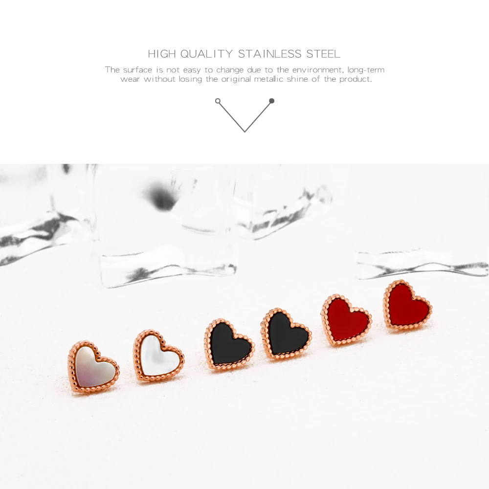 Romantic stainless steel heart shaped zircon tricolour jewelry earrings for women