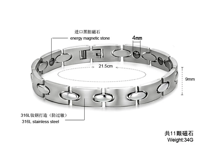 Stainless Steel Health Jewelry Custom Laser Logo Bio Magnetic Bracelet For Men GS8017