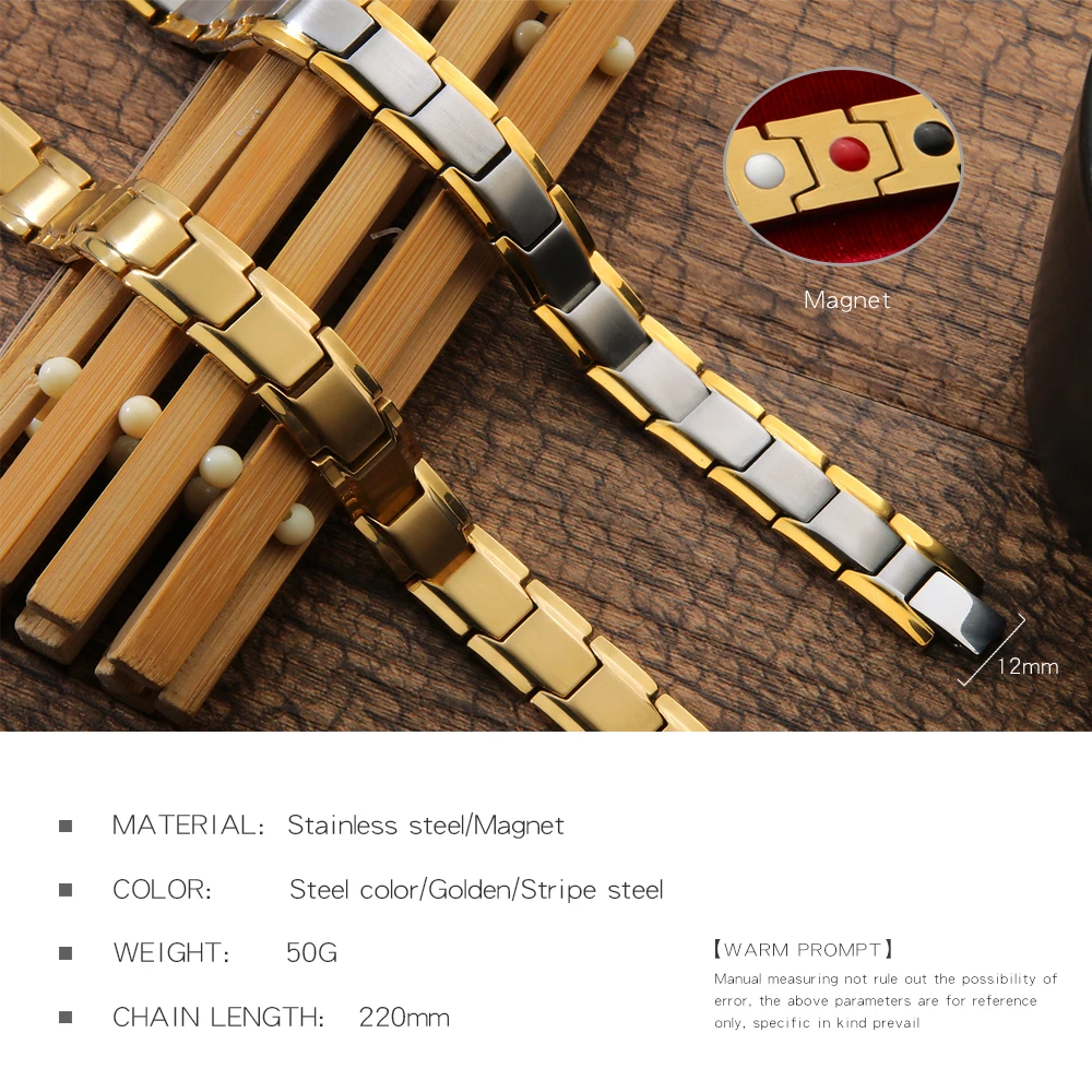 Stainless Steel Health Jewelry Custom Laser Logo Bio Magnetic Bracelet For Men GS935J