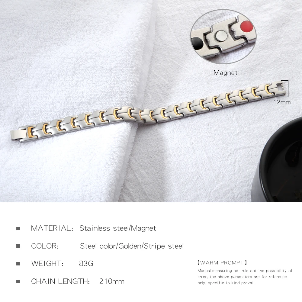 Stainless Steel Health Jewelry Custom Laser Logo Bio Magnetic Bracelet For Men GS939