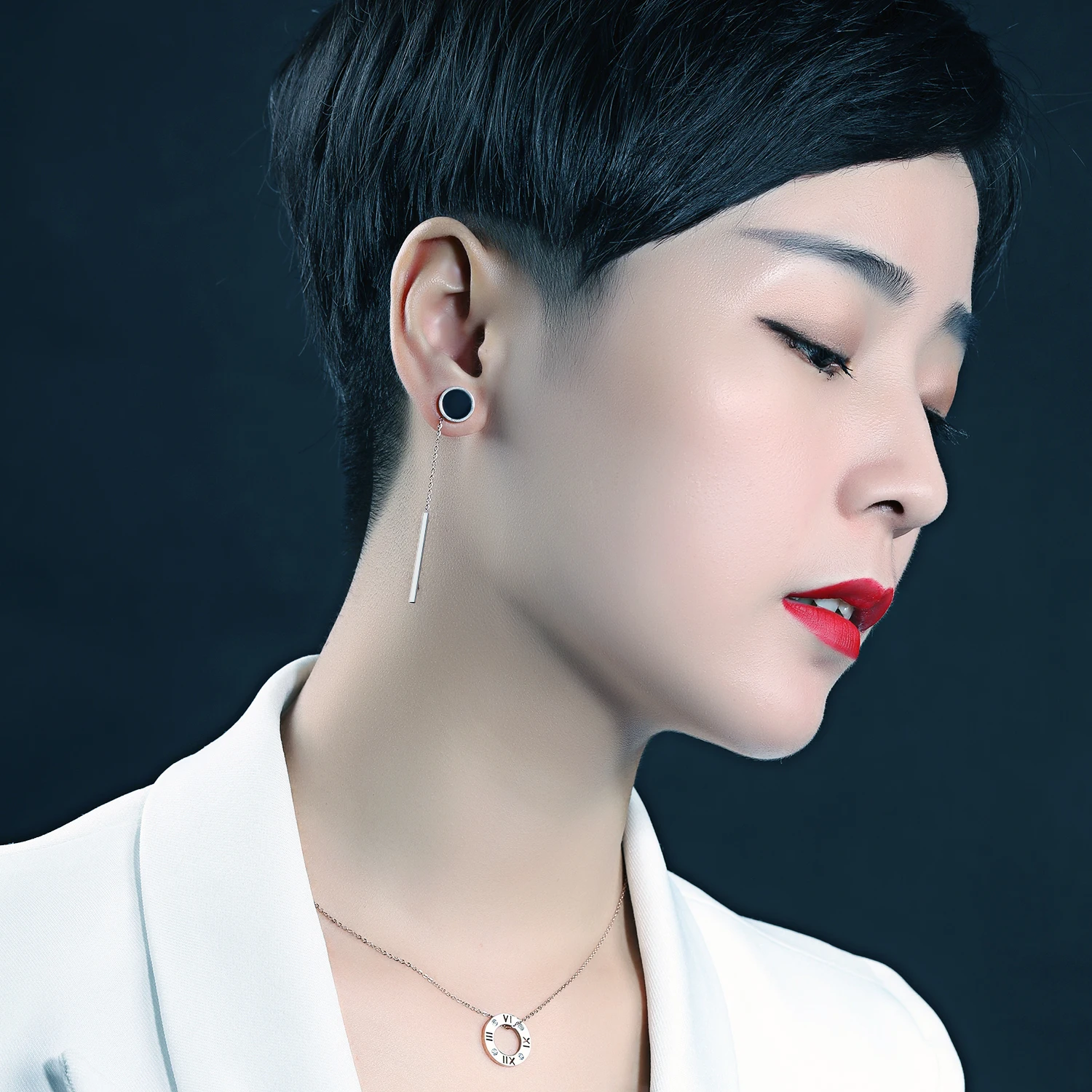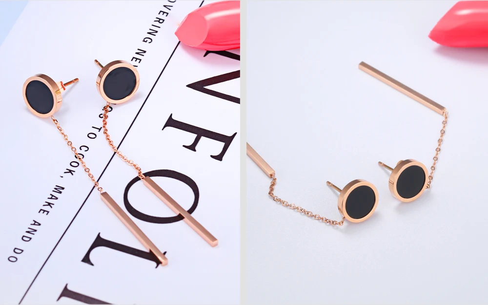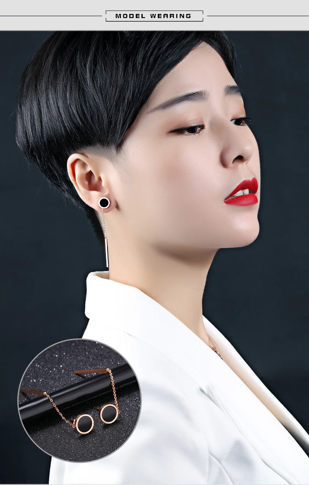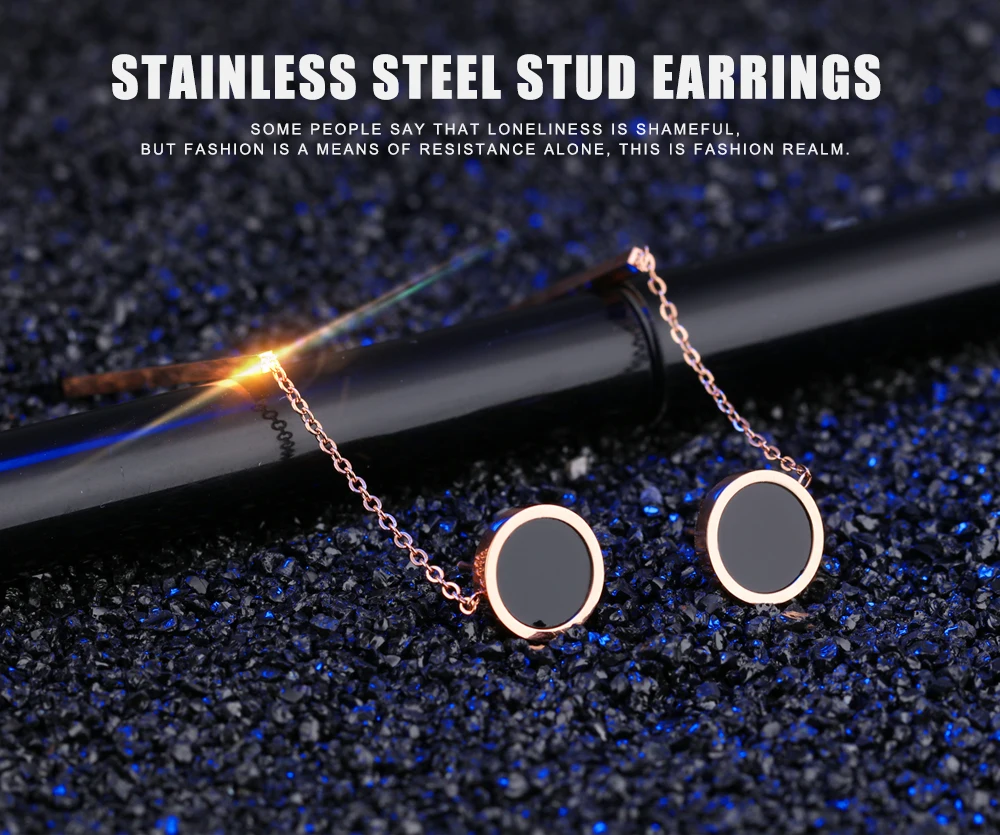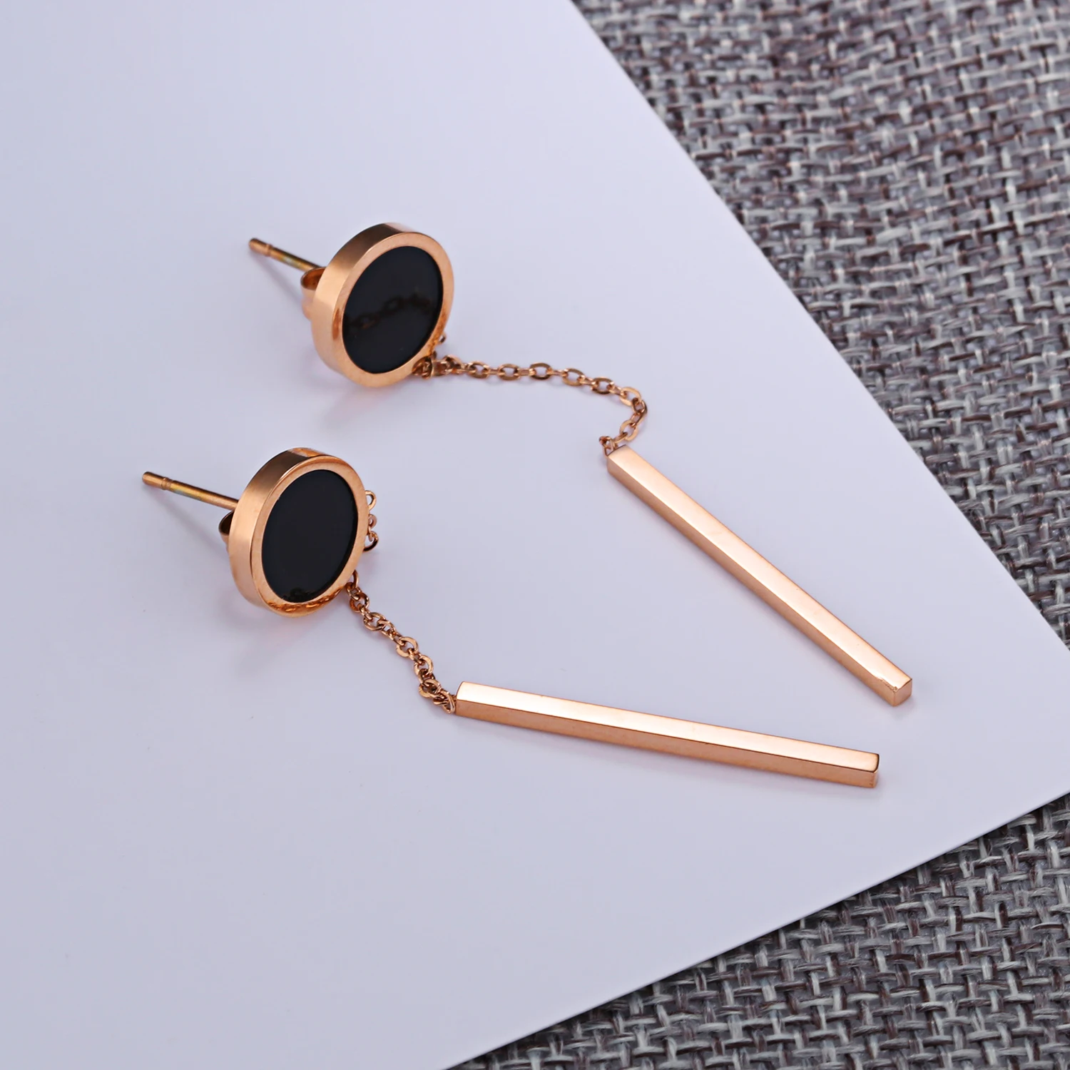 Stylish stainless steel crystal round chain gold plated long earrings for women