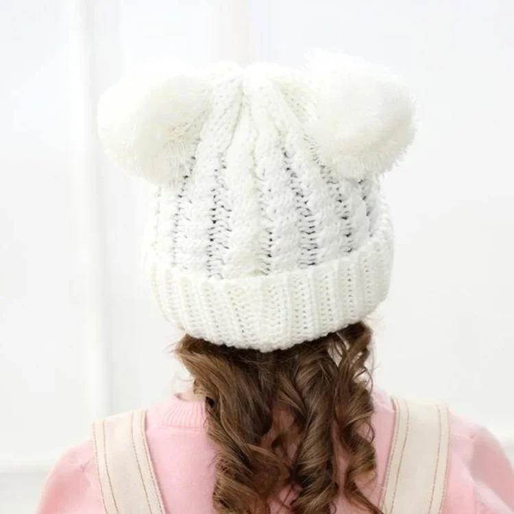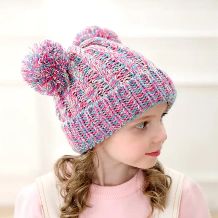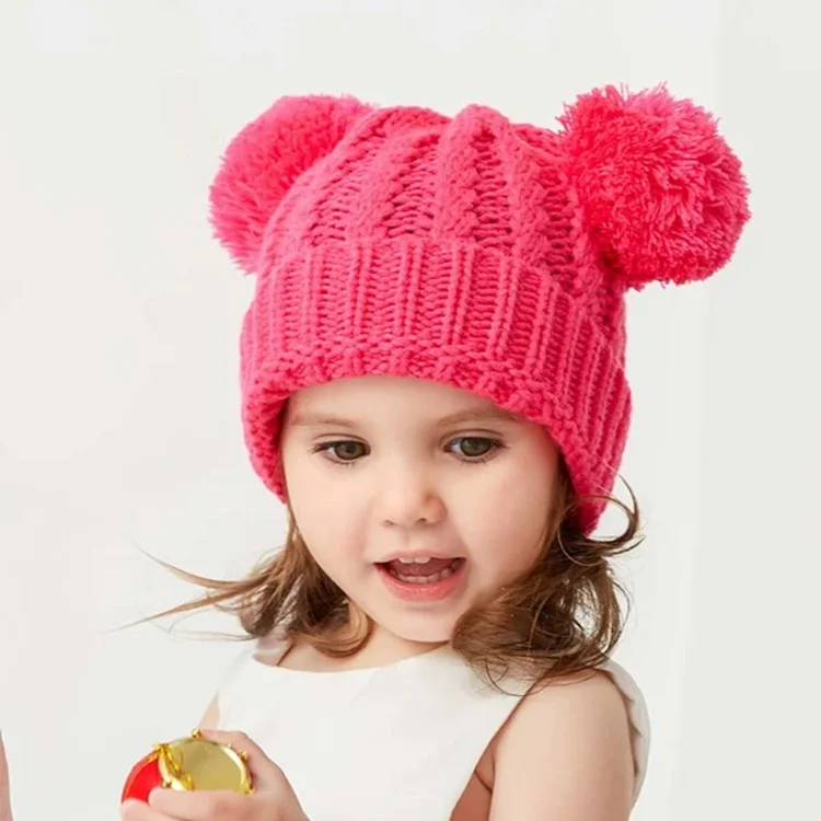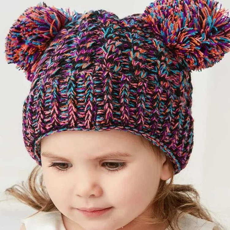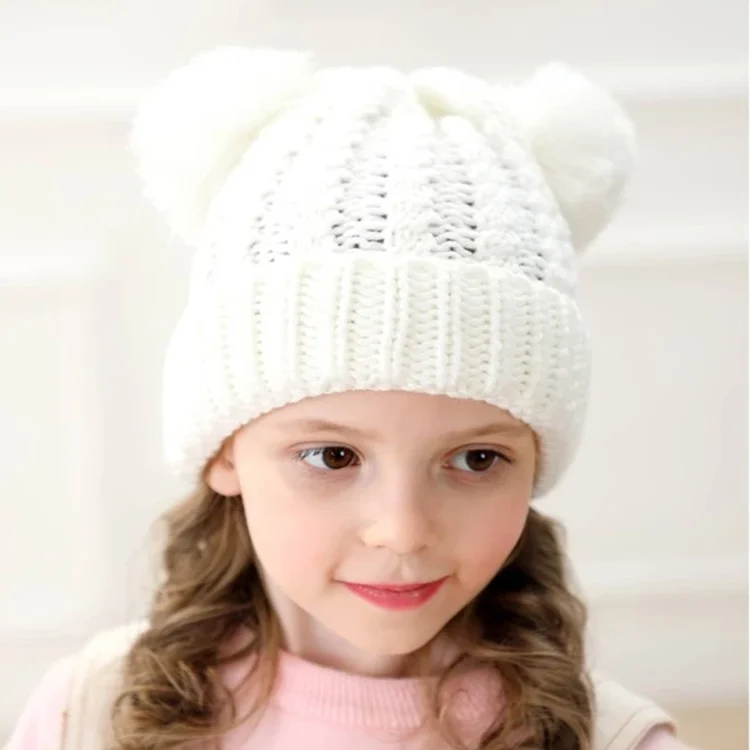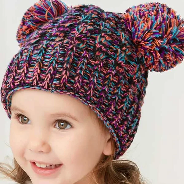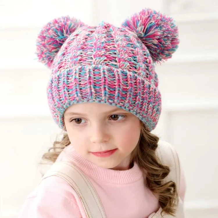 Wholesale Cute Children Beanie Hat Custom Cap Winter Kids Knit Hat With PomPom